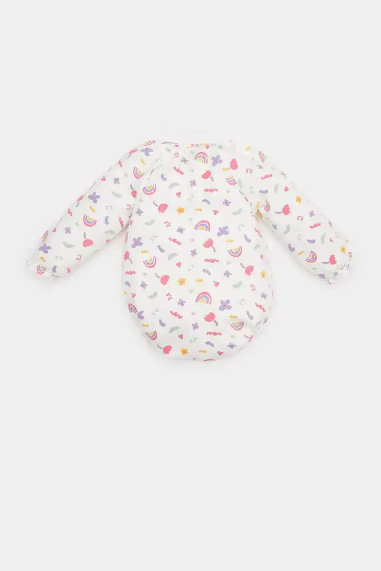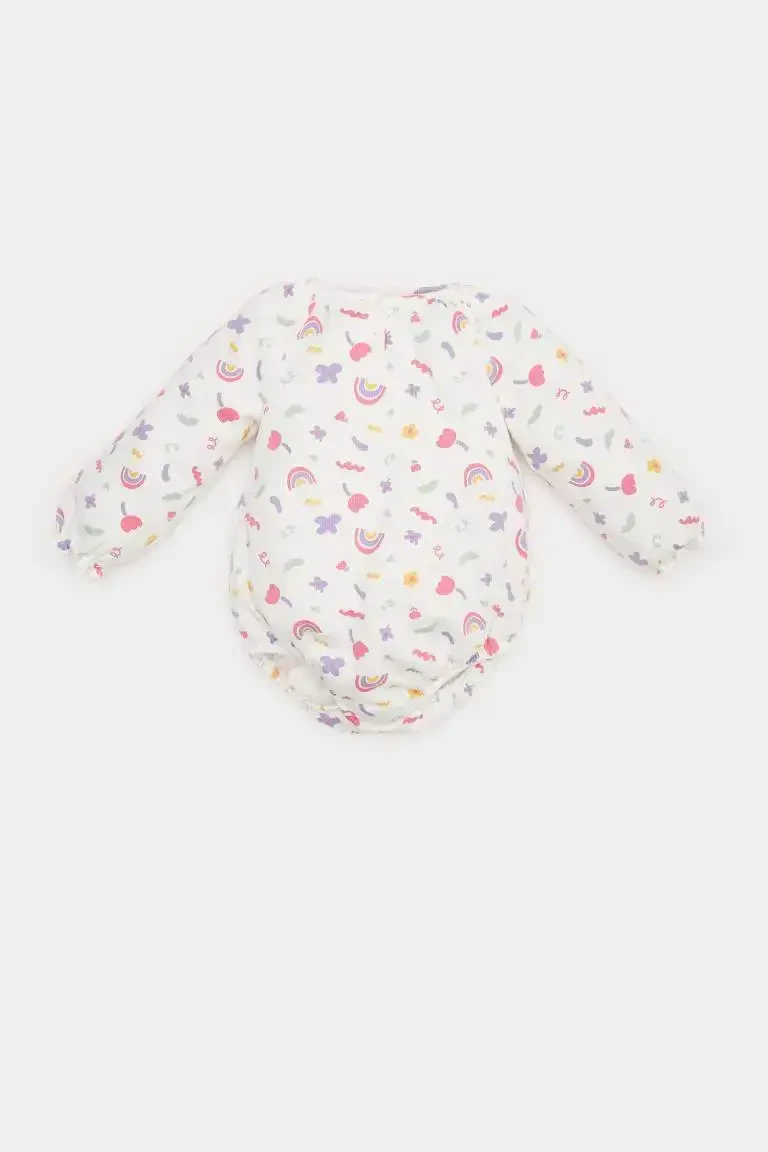 The Baby Girl Newborn Crew Neck Rainbow Printed Waffle Long Sleeve Snap Bodysuit Ecru is one of the sweetest and most comfortable garments for your little girl, combining both style and comfort. With its soft waffle texture, this bodysuit gently envelops your baby's delicate skin, and its breathable fabric ensures comfort all day long. Completing your baby's style with its lovely crew neck detail and eye-catching rainbow print, this bodysuit features a snap front closure system for easy dressing and undressing. A perfect choice for your newborn baby, this bodysuit offers comfort and style at all times, making your baby's day even more beautiful. Made of 100% natural cotton, it minimizes the risk of allergic reactions, and you will enjoy the feeling of its soft texture against your baby's skin. Its ecru color goes perfectly with any outfit and is a wonderful piece that will complete your baby's style. Ideal for both everyday use and special occasions for a stylish look, this bodysuit will be a must-have in your baby's wardrobe. With its high-quality material and workmanship, this bodysuit can be used for a long time, designed with your baby's health and comfort in mind. The snap front closure also makes diaper changes easier, saving you time. Experience the comfort and style of this special design bodysuit with your baby at all times. Made of high-quality cotton, it does not harm your baby's delicate skin and provides comfort all day long. Add cuteness to your baby's cuteness with this special bodysuit!