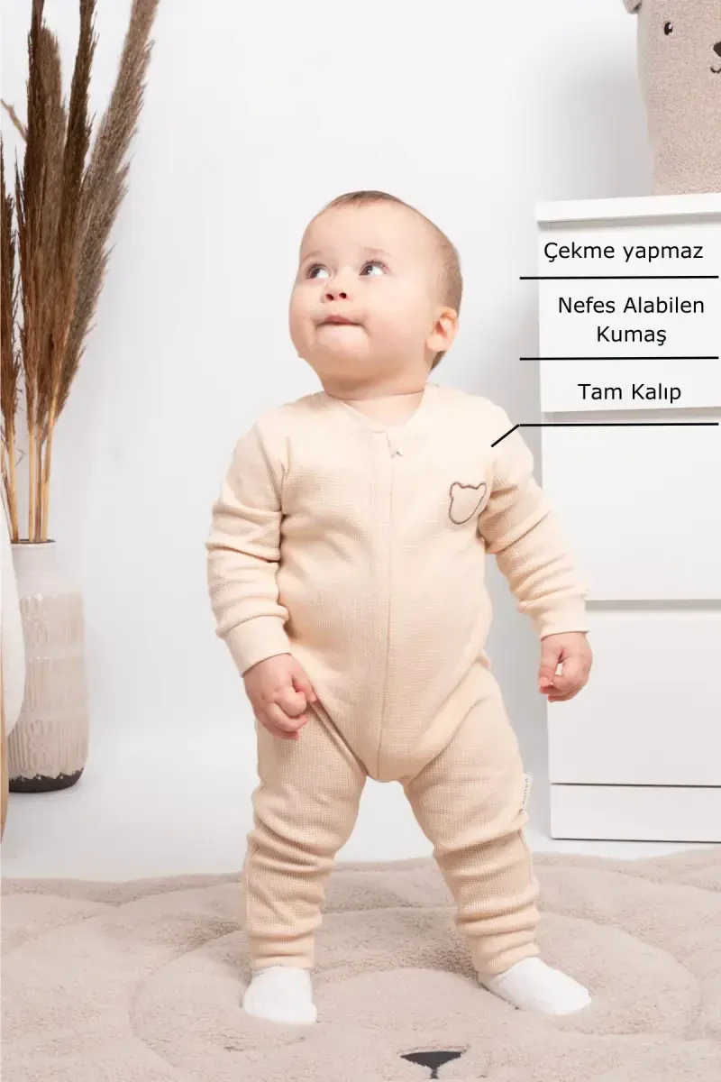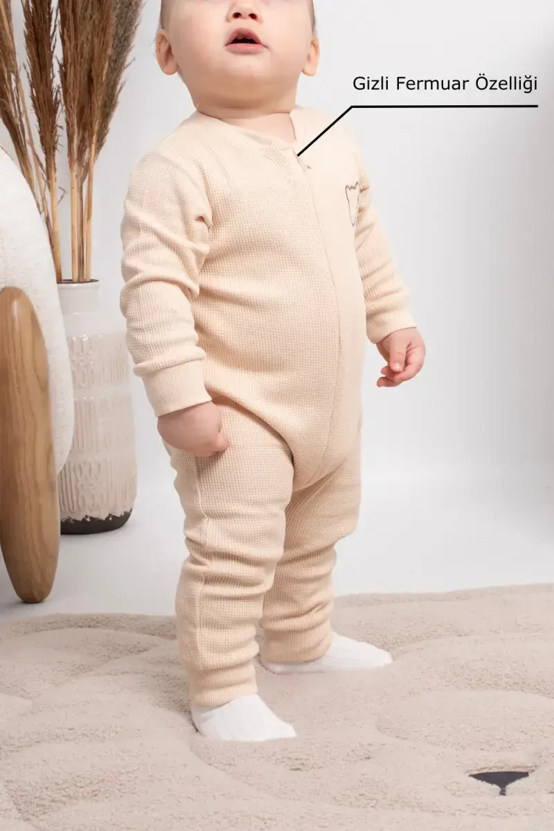 Introducing our Unisex Baby Romper, designed for newborns, infants, and toddlers, offering a perfect blend of comfort and style to accompany their most special moments! This seasonal long-sleeved romper, meticulously designed for babies aged 3 to 24 months, is made from high-quality materials that are gentle on their sensitive skin. The warm and natural tone of milk coffee adds a cute touch to your little ones in any setting and is an ideal option for both baby girls and boys.Product DescriptionDesigned with the comfort and health of your little ones in mind, the Unisex Baby Romper offers comfortable wear all day long thanks to its soft-textured fabric that does not restrict their freedom of movement. The milk coffee color provides a natural and warm look, while the seasonal feature of the romper makes it an ideal choice for spring, autumn, and mild summer days. The long-sleeved design of the romper protects your baby's arms in cool weather, while the easy-to-open and close snap fasteners provide a practical dressing experience. This makes changing your baby's diaper or dressing the romper much easier and faster. The Unisex Baby Romper not only offers a stylish look but also stands out with its skin-friendly, anti-allergenic, and breathable fabric. This special fabric, which does not irritate your baby's sensitive skin, prevents sweating and keeps them dry and comfortable throughout the day. The milk coffee color can be easily combined with different outfits and adds a stylish touch to your baby's wardrobe. You can easily choose this romper for daily use, special occasions, or travels, and it will complete your baby's style and give them a cute look. The Unisex Baby Romper is a product that makes mothers' lives easier and babies enjoy wearing. This romper, produced with your baby's health and comfort in mind, also attracts attention with its long-lasting and durable structure. When washed in accordance with the washing instructions, it preserves its original appearance and softness for a long time. If you want the best for your baby, you can choose the Unisex Baby Romper and offer them both a stylish and comfortable wearing experience. This romper will become an indispensable part of your baby's life, growing with them from the first months. Remember, your baby's happiness is your happiness, and this romper will accompany them in every moment, making them feel your love and care.Product Features* Suitable for babies aged 3-24 months.* Suitable for seasonal use, long-sleeved design.* Milk coffee color, ideal for both baby girls and boys.* Soft and skin-friendly fabric.* Snap-fastener design for easy dressing and undressing.* Comfortable cut that does not restrict freedom of movement.* Anti-allergenic and breathable fabric structure.* Suitable for daily use and special occasions.* Easy to clean and long-lasting.* Stylish and cute appearance.Additional InformationPlease follow the washing instructions for the long life of the product. Do not wash with colored products and iron at low temperature. Our products are OEKO-TEX® Standard 100 certified, which guarantees that the product does not contain harmful substances and is safe for babies' sensitive skin.