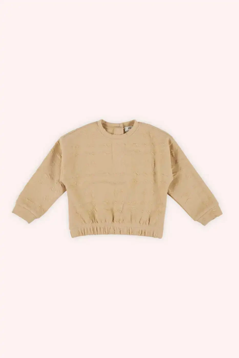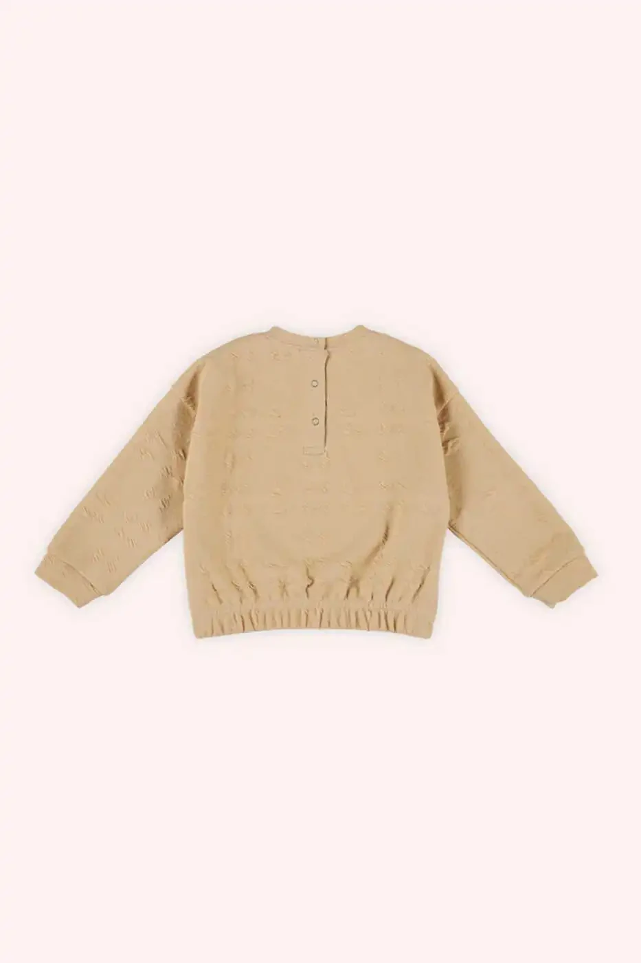 A stylish and comfortable choice for your little girls, the Beige Sweatshirt is perfect for everyday activities. Its comfortable fabric follows your baby's every move, while its elegant design reflects style. Ideal for keeping your baby warm in cold weather, this sweatshirt also provides a practical solution in your daily life. Its soft texture helps protect your baby's delicate skin, while its durable and long-lasting construction allows for long-term use. The beige color, being a universal color, can be easily combined with different outfits. This sweatshirt, which will add elegance to your baby's style, will be an indispensable part of your daily combinations with its natural and simple appearance. Designed to suit various age groups, the Beige Sweatshirt is a perfect choice for your baby girl of any age. With its durable construction that allows for long-term use, it will accompany your baby's development.