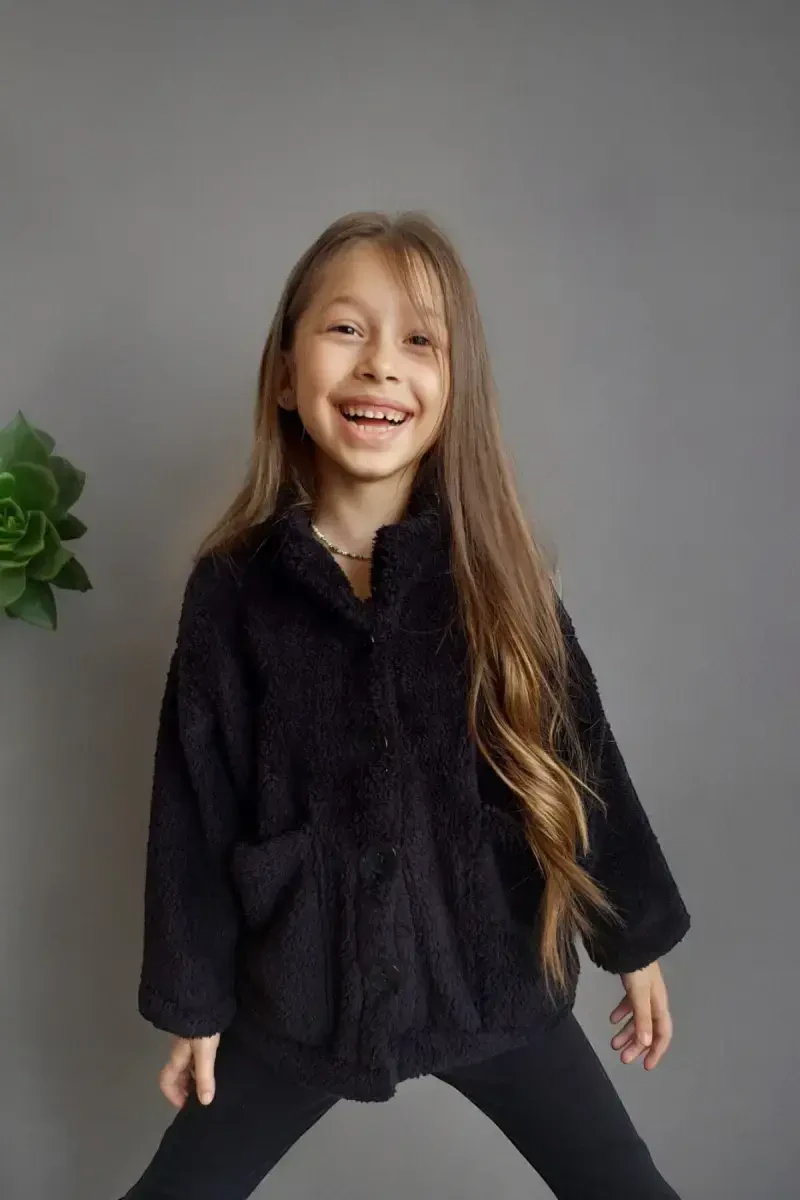 Girls' Black Plush Jacket, a special design that combines elegance and comfort, offered with the assurance of QUB CLUB. You can choose the one that fits your child's size perfectly by purchasing according to the size chart. This jacket is ideal for comfortable and daily use, and offers a comfortable experience every day thanks to its regular fit design. The product is designed as part of the unisex collection and is suitable for both girls and boys. It provides ideal protection during seasonal transitions with its long sleeves and regular length cut. This plush jacket, which will look both stylish and cute on your child, will be an indispensable part of their wardrobe. Its double-pocket design for practical use makes it easy to carry small items. Thanks to its plush weave type, it offers a soft touch and warmth. It keeps your child warm in cold weather while ensuring that they do not compromise on their style. It can be cleaned according to the washing instructions that provide easy care, so the jacket stays like the first day for a long time. It can be easily put on and taken off with its button closure and provides safe use. This plush jacket, which does not restrict your child's freedom of movement and keeps them warm at the same time, can be easily used at school, in the park or on special occasions. Thanks to its black color, it can be easily combined with any outfit and adapts to any environment. This jacket, which will adapt to the energy and style of girls, will be appreciated by both parents and children. It offers long-lasting use thanks to its high-quality material and careful workmanship. Don't miss this plush jacket that will add elegance and comfort to your child's wardrobe! Limited stock is offered to be sold at the campaign price, take advantage of this opportunity. Please note that the product may be sold by more than one seller and prices may vary depending on seller ratings, delivery statuses and other factors. A maximum of 10 pieces of this product can be ordered. There is a free return option within 15 days. You can visit the relevant page for detailed information.
