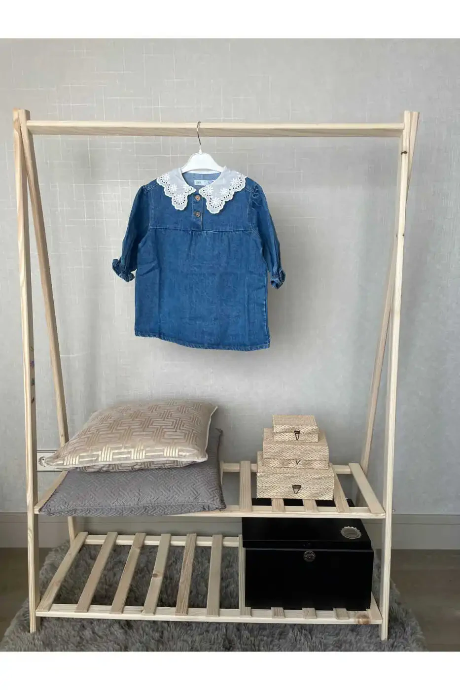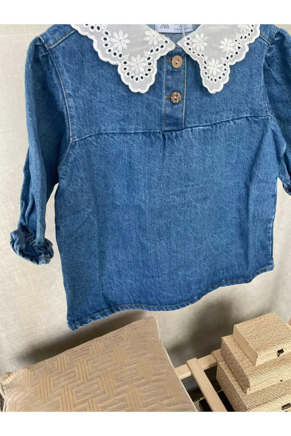Made of cotton fabric. It has a crew neck. It has long sleeves. It is a straight model.