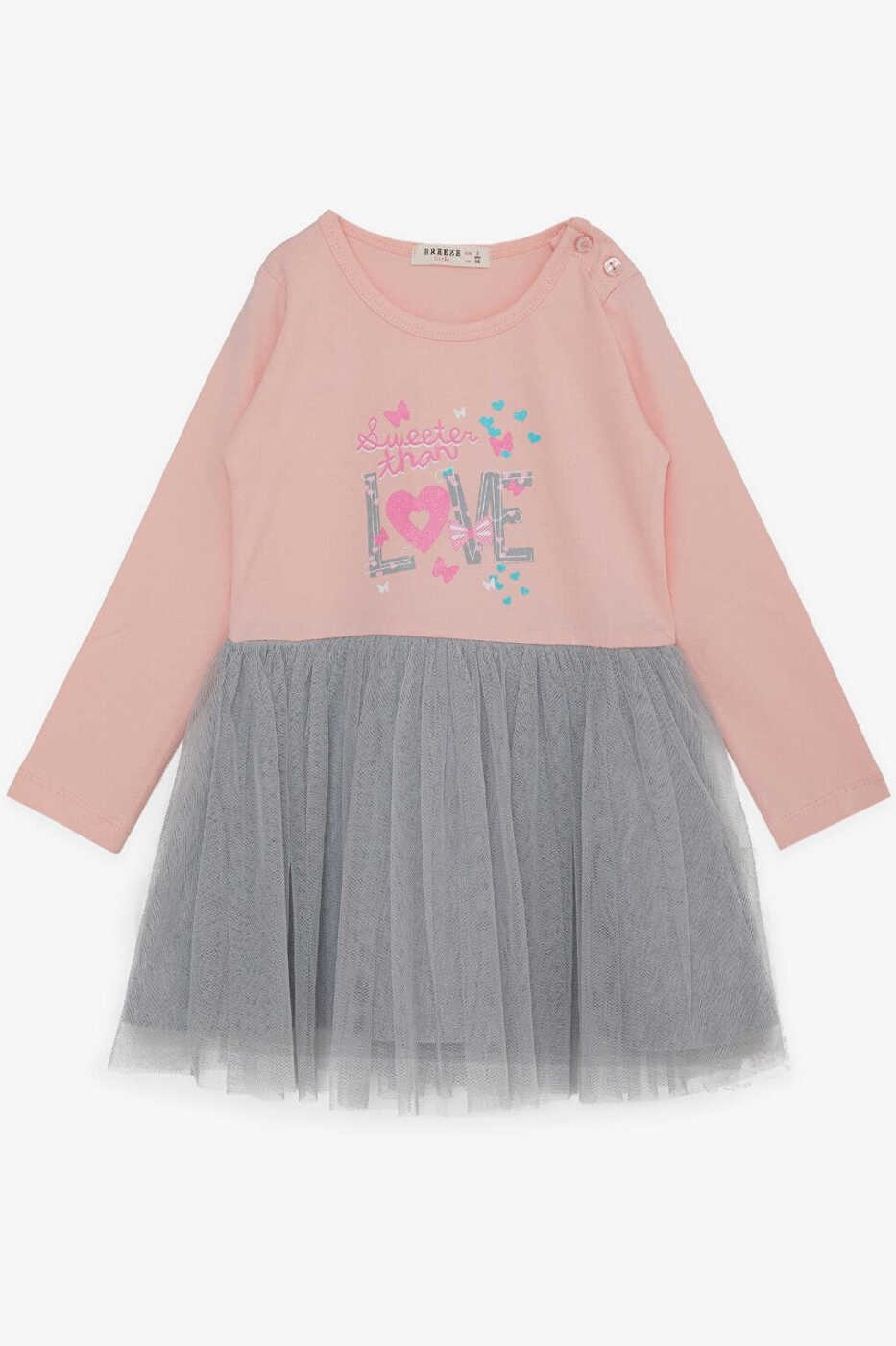 A gorgeous dress that will make your little princess look stylish and comfortable in the summer months. The dress, which features a charming powder color and tulle details, also draws attention with its cute inscription print on the front. Its long sleeves ensure that your child looks stylish while staying cool. Its lightweight and breathable fabric provides comfortable use on summer days.