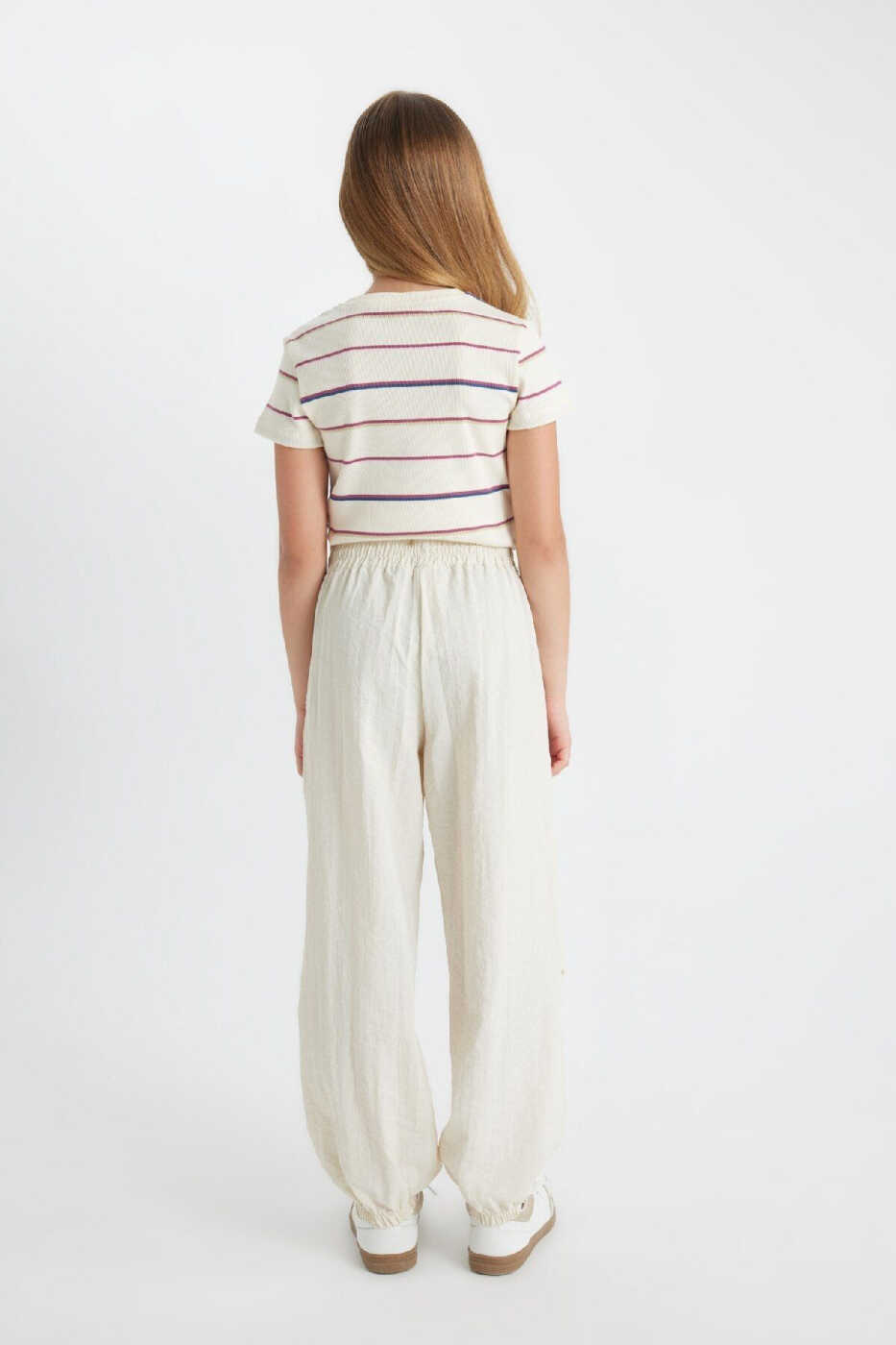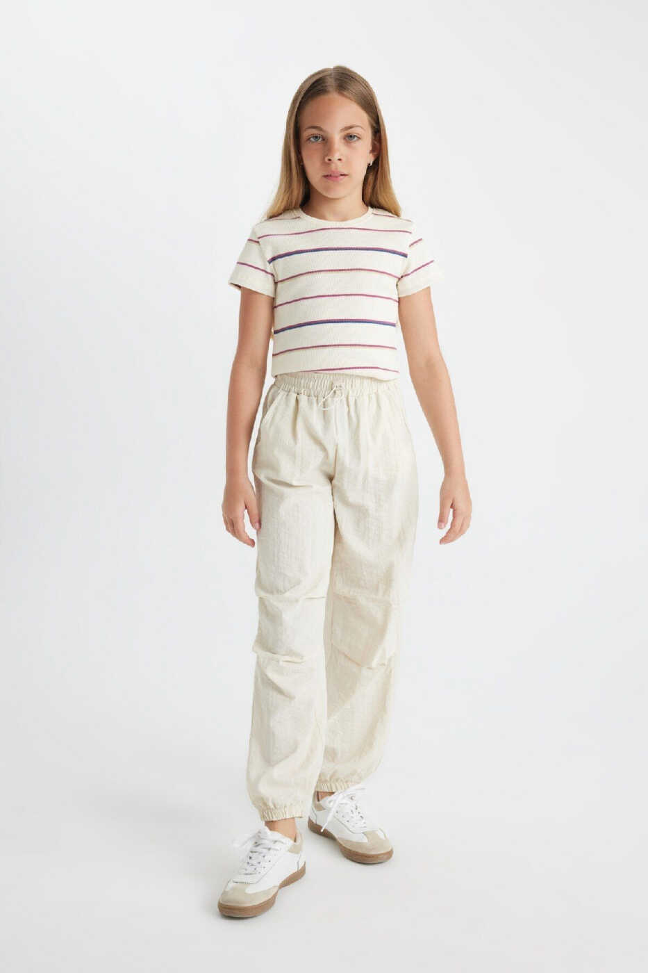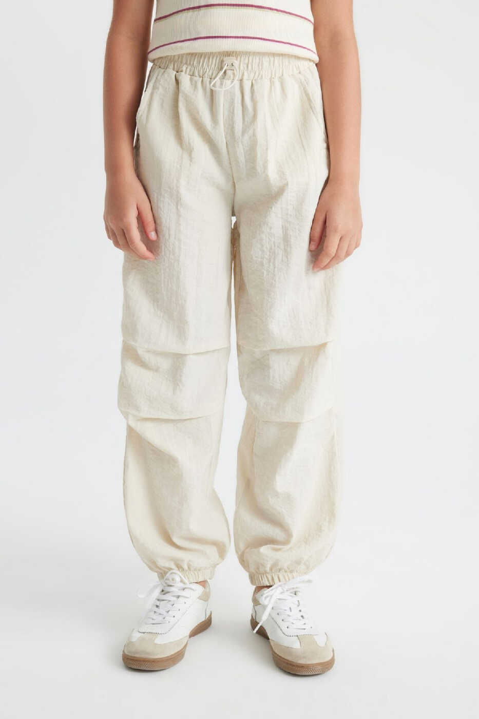 These jogger pants combine comfort and style for your little girls, making them an ideal choice for everyday wear. Made from lightweight and breathable parachute fabric, the pants ensure your child stays comfortable all day long. The elastic waistband and leg cuffs provide a perfect fit. With side pockets, they can safely carry small items. Its stylish and sporty design complements any outfit.