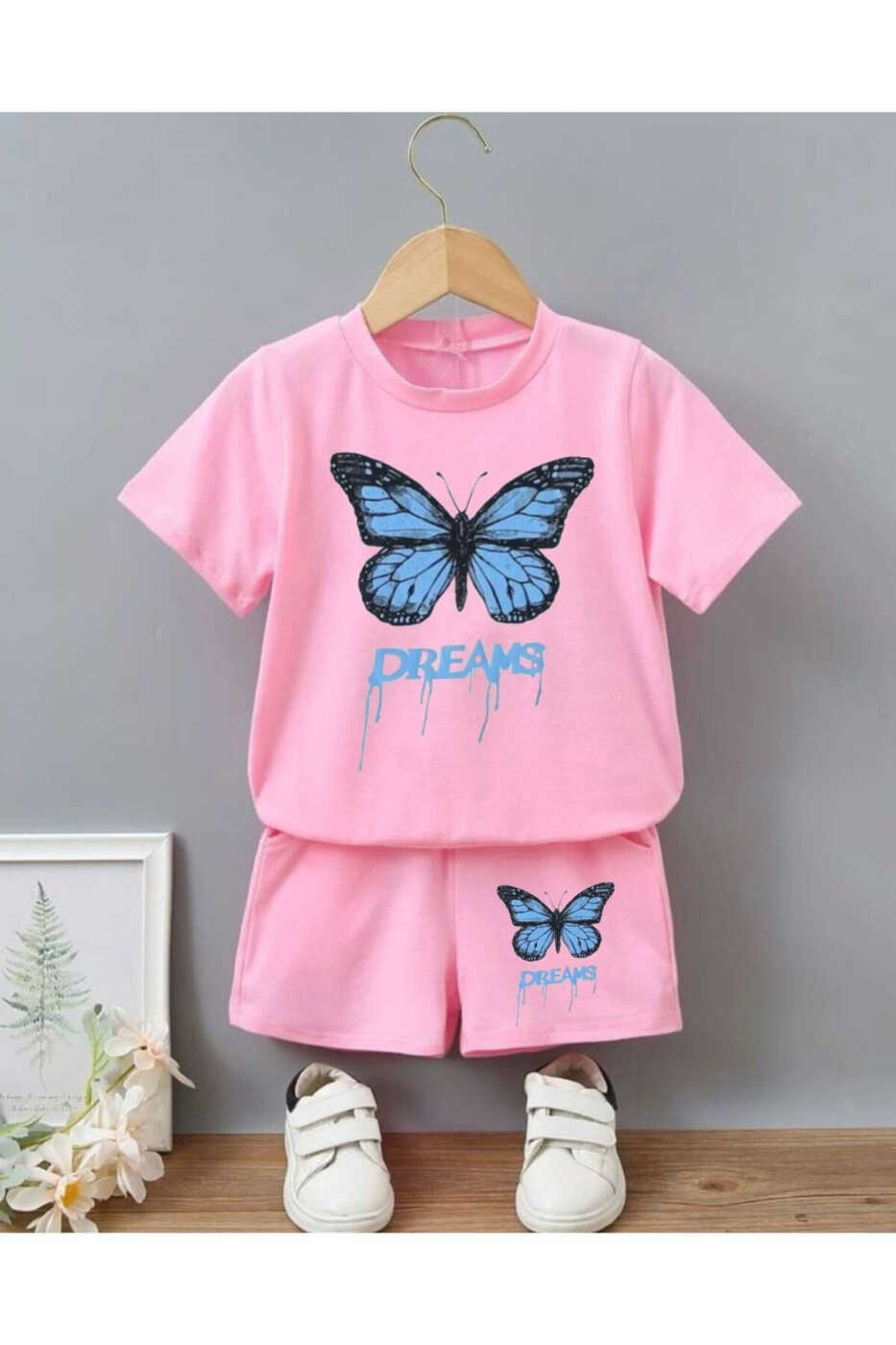 girls shorts set, girls t-shirt, pink shorts, blue dreams print, summer kids clothes, kids clothes, stylish kids clothes, comfortable kids clothes