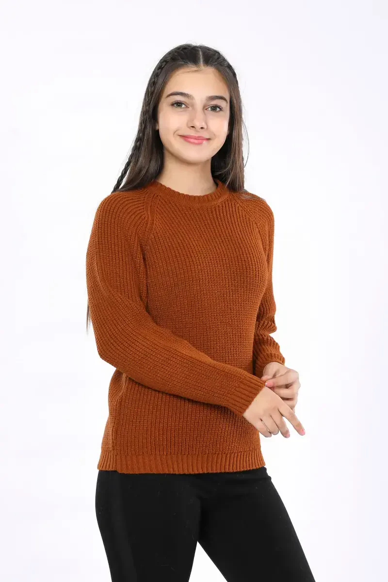 Our Regular Fit Basic Knit Sweater for girls is a candidate to be one of the indispensable pieces of your wardrobe by combining both elegance and comfort. Designed especially for little ladies between the ages of 4 and 13, this sweater can be easily preferred for daily use as well as on special occasions. Its copper color, with its warm and natural tone, easily adapts to all kinds of combinations and offers a vibrant look that reflects your child's energy.Thanks to its long-sleeved design, this knit sweater provides ideal protection in cool weather, and with its crew neck, it offers a modern and elegant stance. The crew neck adds a classic touch to sweaters, while allowing children to move comfortably. The regular fit cut offers an ideal balance that is neither too tight nor too loose on the body. In this way, your child looks both stylish and can move freely all day long.The main material of the sweater is 100% acrylic. Acrylic has a wool-like texture and is known for its warming property. At the same time, acrylic is a material that is resistant to wear, does not easily deform, and retains its colors for a long time. With these features, our knit sweater offers long-lasting use. In addition, acrylic is a lighter and easier to clean material than wool, which provides a great advantage for mothers.This knit sweater is a versatile piece that your child can easily use both at school and in daily activities. It can be easily combined with jeans, skirts or leggings. You can provide extra protection in cold weather by wearing a jacket or coat over it. The copper color is a perfect match with earth tones, which are indispensable for autumn and winter months.The Girl's Regular Fit Basic Knit Sweater is not only stylish and useful, but also friendly to your child's skin. Thanks to its soft texture, it offers comfortable use all day long and does not irritate sensitive skin. You can safely choose our product and provide your child's comfort and style together. This sweater is a candidate to be both your and your child's favorite piece!
