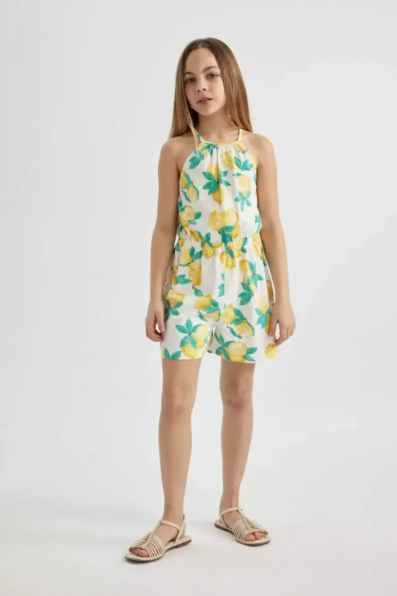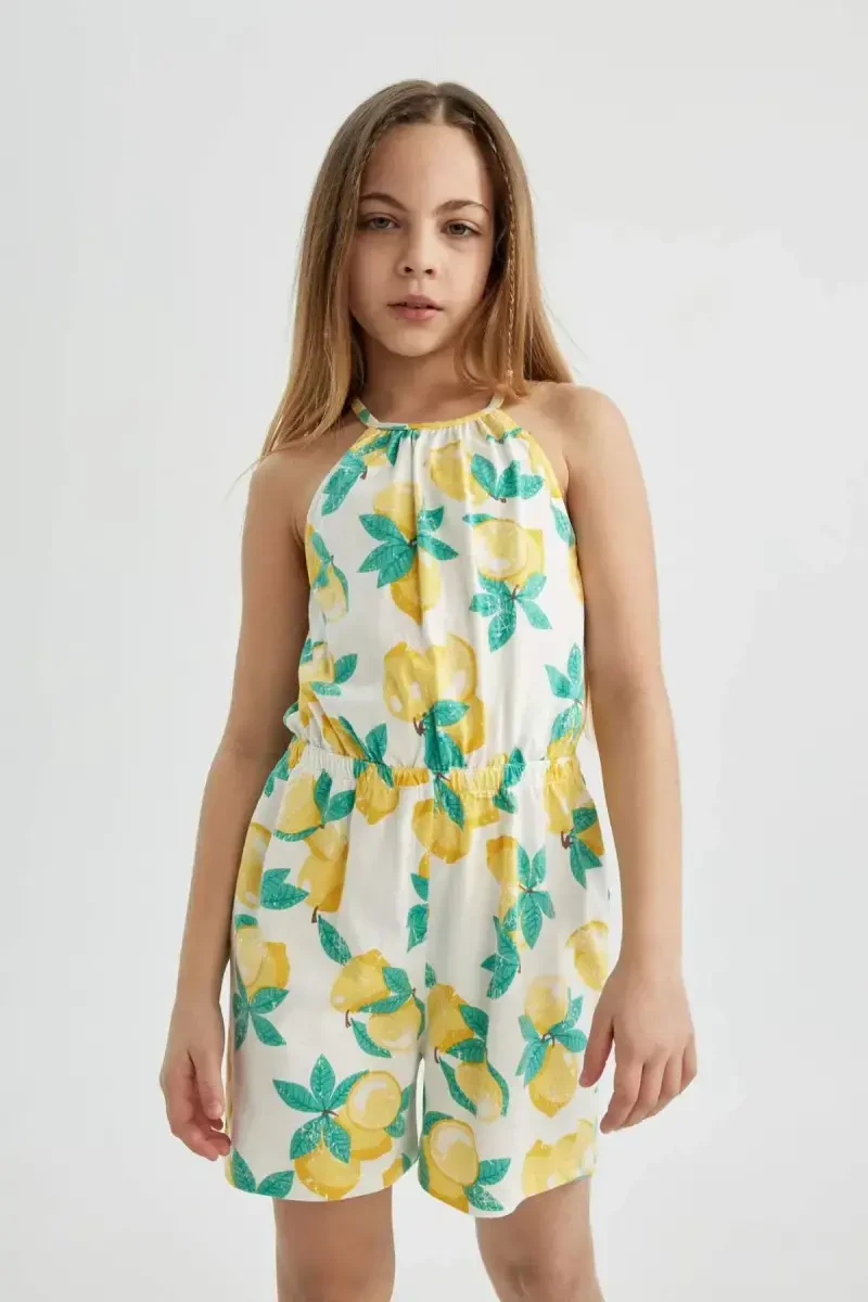 The Girls' Sleeveless Lemon Patterned Cotton Cropped T-Shirt, made from soft cotton fabric, is a perfect choice for keeping your daughter comfortable and stylish on hot summer days. Its breathable and sweat-wicking structure ensures that your daughter stays comfortable all day long. The vibrant lemon pattern will reflect your daughter's style and add energy to any outfit.