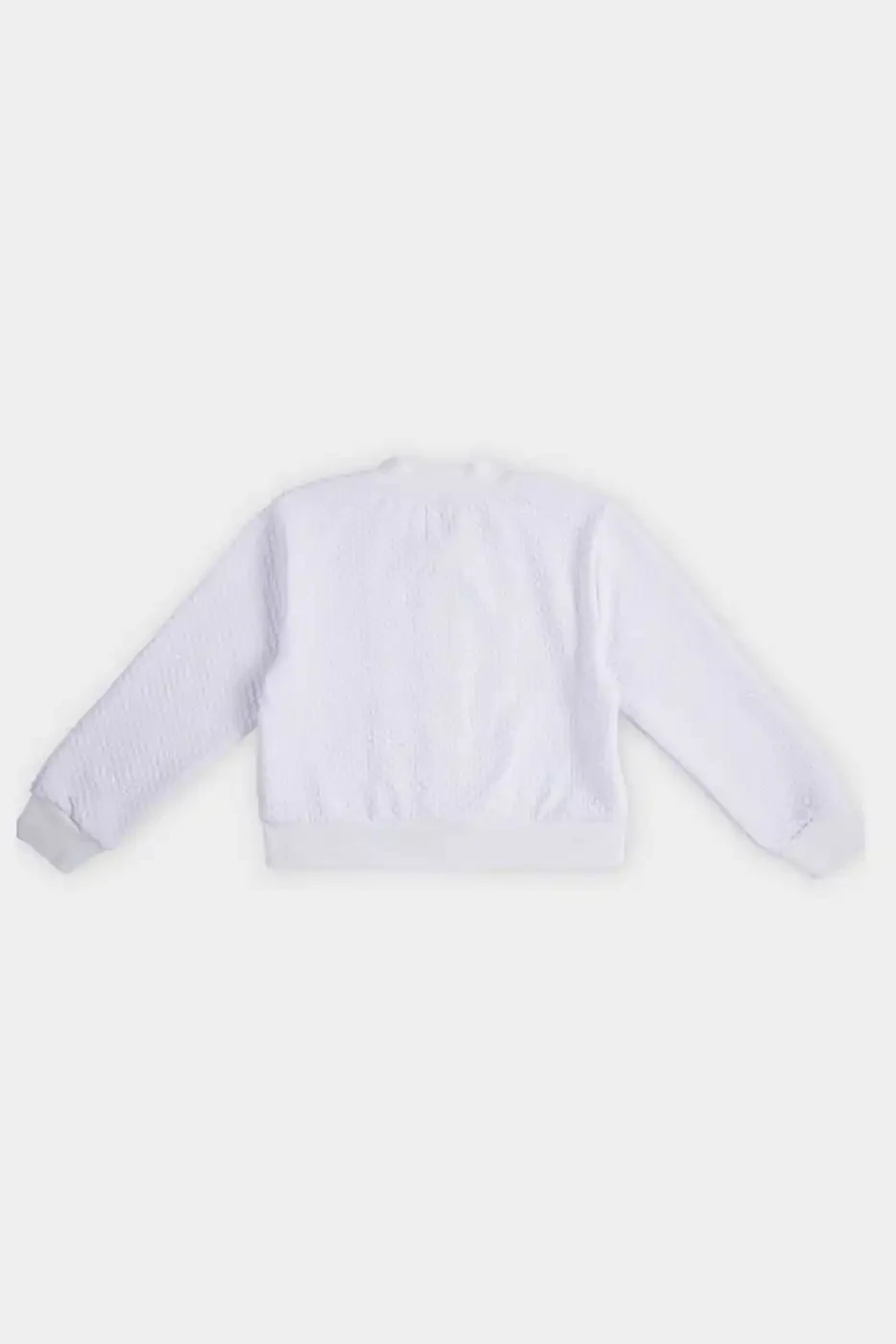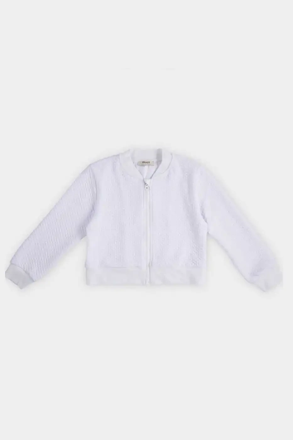 Girl's White Sweatshirt | Zippered, Textured, Stylish and Comfortable
