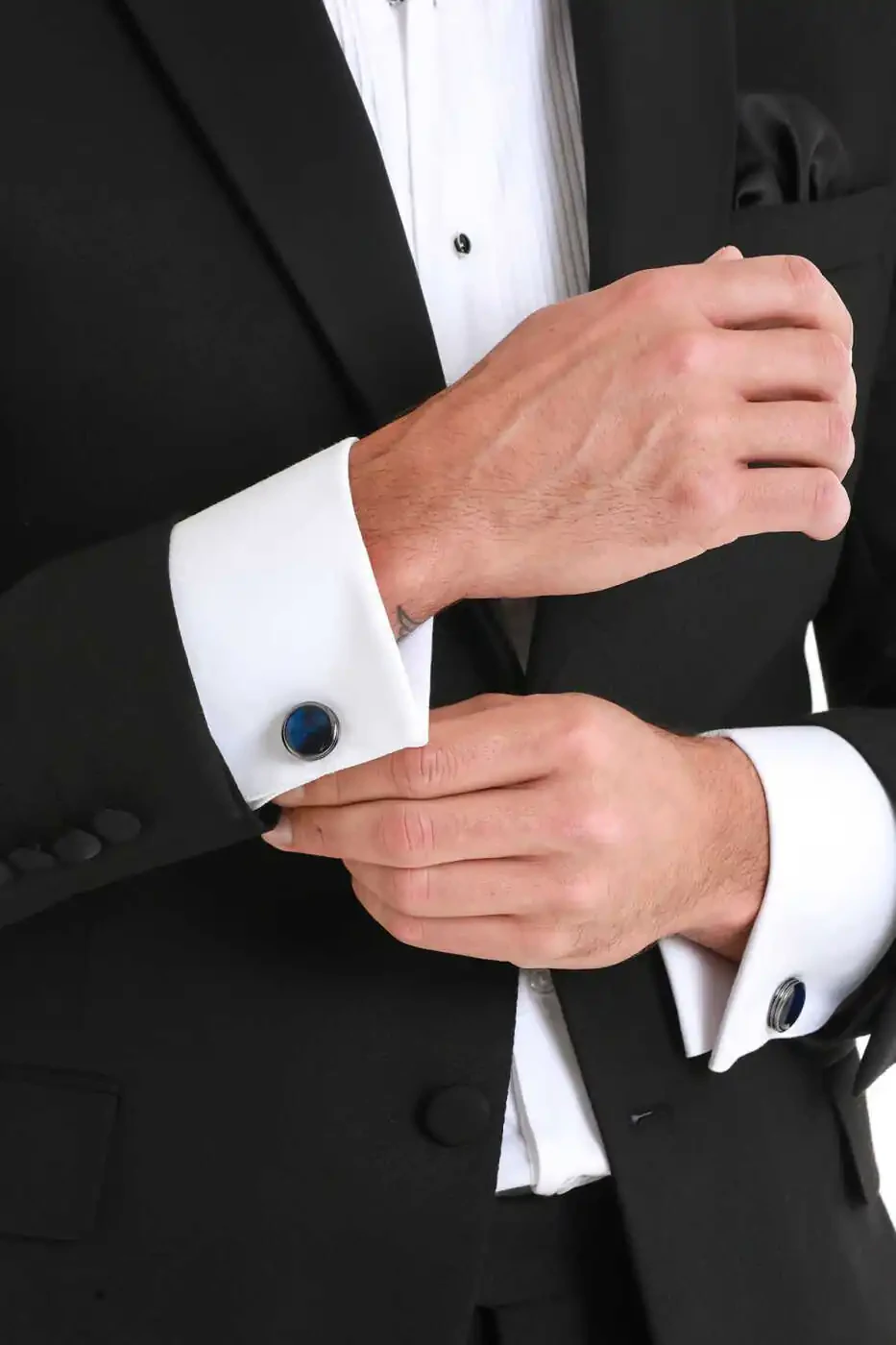 Гладкие круглые запонки темно-синего цвета - идеальный выбор для деловых встреч, особых случаев или любого момента, когда вы хотите добавить изысканности своему стилю.