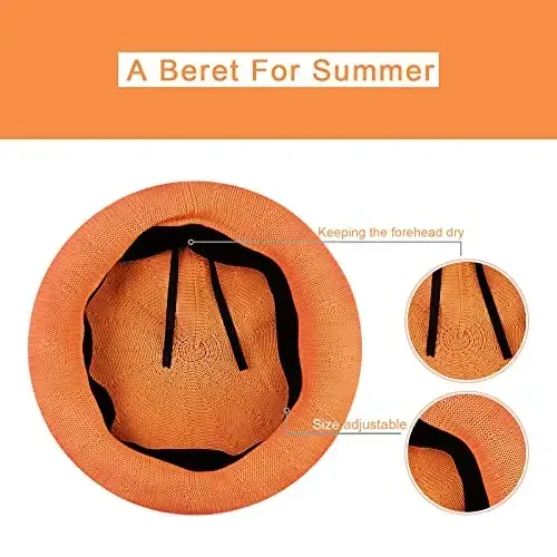 Gllutt Summer Knitted Thin Beret Hat for Women Size Adjustable French Style Solid Color