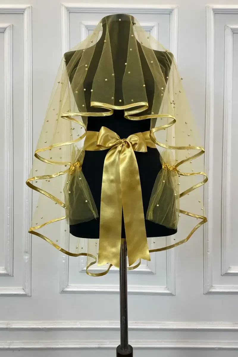 Be the symbol of elegance and sophistication at your wedding with the dazzling Gold Braided Abundant Pearl Bridal Veil Set that will complete the wedding dress of your dreams. This special design veil set is more than just an accessory; it will be the symbol of your love and happiness. This set, which will perfectly match your wedding dress, will accompany your unforgettable memories. Produced from carefully selected, high-quality tulle, this veil set offers comfortable use all day long with its light and elegant texture. The gold-colored braid detail on the veil adds a sophisticated touch to the design, while the abundant pearls add sparkle and romance to your wedding dress. Each pearl is meticulously placed and sparkles with every movement of the veil, turning you into a princess. The henna veil included in the set allows you to have an unforgettable experience by bringing together traditional and modern elements on your henna night. The gold-colored embroidery and pearls on the henna veil are in perfect harmony with the veil, enriching the atmosphere of your henna night. The henna veil is more than just a veil; it symbolizes our values and cultural heritage that have been passed down from the past to the present. The Gold Braided Abundant Pearl Bridal Veil Set is a versatile accessory that you can use not only for your wedding and henna night, but also for your special photo shoots. The veil and henna veil will be the most beautiful complement to your wedding dress and style, and will add a special meaning to your photos. It ensures that you have a timeless elegance that you will look at with the same excitement even years later in your wedding photos. This special design veil set preserves its original beauty for many years with its careful workmanship and quality materials. It will be a valuable piece that you can keep as a souvenir after the wedding or leave as a legacy for future generations. The Gold Braided Abundant Pearl Bridal Veil Set is not just a veil, but also a symbol of a love story and an unforgettable beginning. Attract all the attention to yourself with this special set at your wedding and henna night and make the most beautiful day of your life unforgettable.