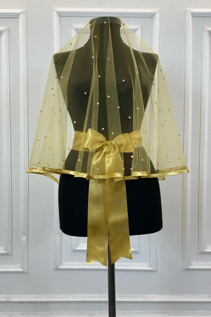 Gold Biyeli İncili Gelin Duvak Seti & Kına Örtüsü | Zarafet ve Şıklık Bir Arada!