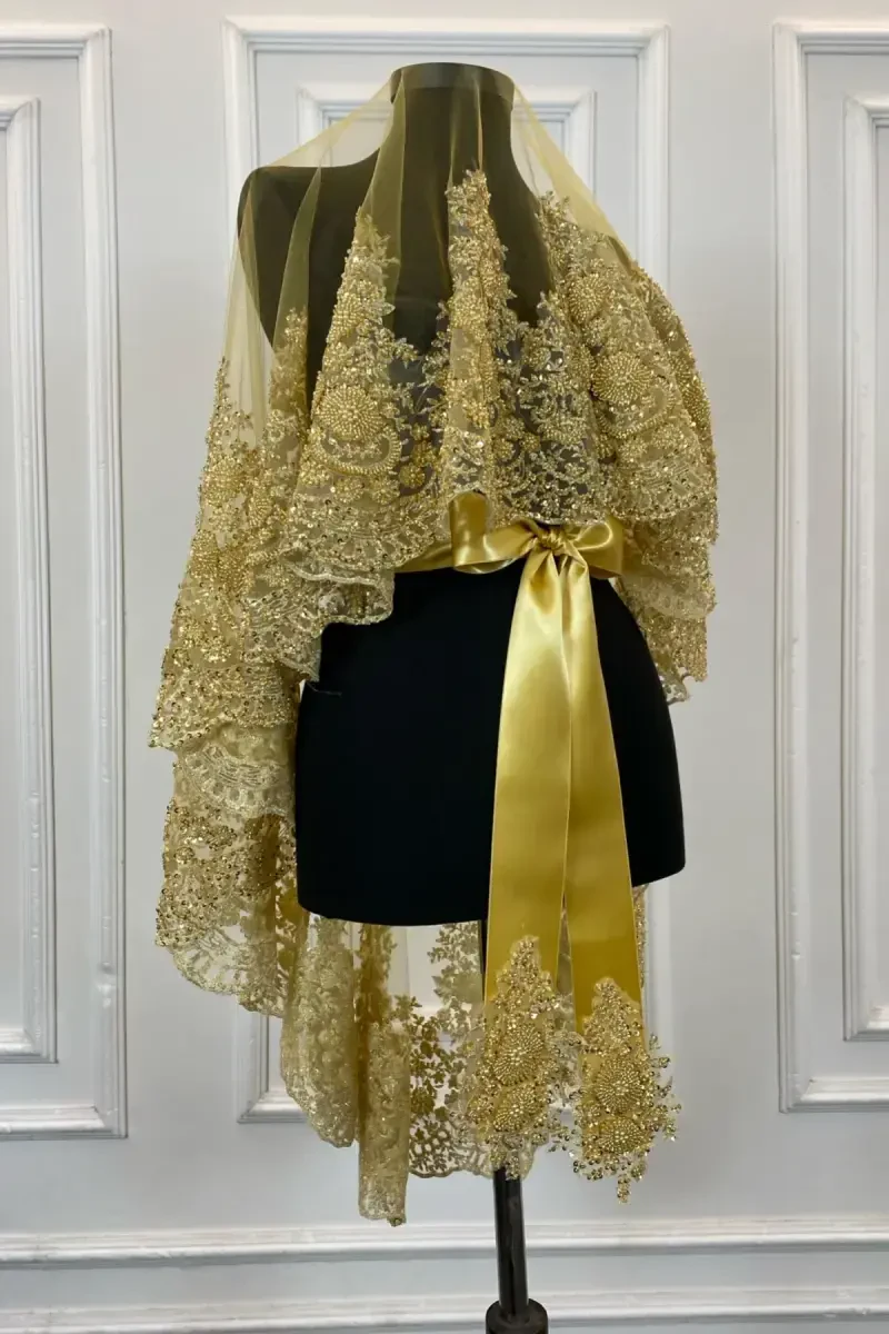 Gold Bridal Veil Set | Henna Veil 6 Pieces - Gold Color | Wedding & Henna Night Special Design