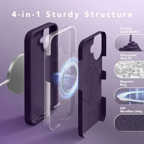 GONEZ Magnetic for iPhone 16 Case, Compatible with MagSafe, [Screen Protector + Camera Lens Protector], Liquid Silicone Shockproof Protective Phone Case for iPhone 16 6.1", Deep Purple