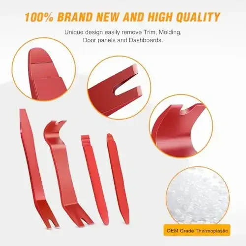 Безопасно обновите или отремонтируйте салон своего автомобиля с помощью набора для снятия обивки GOOACC из 11 предметов. Этот полный набор предлагает все, что вам нужно для работы с автомобильными панелями, дверными панелями, приборными панелями, аудиосистемами и многим другим. Набор включает в себя 7 металлических рычагов и 4 нейлоновых инструмента для снятия обивки, разработанных для удовлетворения различных потребностей. Металлические рычаги идеально подходят для операций снятия, требующих большей силы, а нейлоновые инструменты сводят к минимуму риск царапин на деликатных поверхностях. Набор для снятия обивки GOOACC — это не просто набор инструментов, это признак вашей заботы об автомобиле. Его эргономичный дизайн снижает усталость рук даже при длительном использовании. Нескользящие ручки предотвращают скольжение инструментов в руке, обеспечивая безопасную рабочую среду. Поверхности пластиковых инструментов для снятия специально обработаны, что сводит к минимуму возможность царапин и скольжения во время использования. Эта функция является большим преимуществом, особенно при работе с деликатными деталями интерьера. Набор инструментов для снятия обивки GOOACC — идеальное решение для установки/снятия автомобильных аудио/радиосистем, дверных панелей, молдингов, эмблем, оконных рам или ремонта автомобильных интерьеров. С помощью инструмента для снятия крепежа, входящего в комплект, вы можете легко снять зажимы бампера, зажимы крыльев, зажимы брызговиков и другие крепежные элементы, не ломая их. Тонкий наконечник облегчает доступ к зажимам и позволяет выполнять снятие, не открывая обивку. Набор для снятия обивки GOOACC из 11 предметов — незаменимый инструмент как для профессиональных автомехаников, так и для любителей, которые заботятся о своих автомобилях. Продукт изготовлен из прочных материалов и предназначен для длительного использования. Благодаря ящику для хранения все инструменты можно хранить и переносить в организованном виде. Красный цвет позволяет легко заметить набор. Безопасно снимайте, ремонтируйте и обновляйте салон своего автомобиля с помощью GOOACC. Проявите должное внимание к своему автомобилю и упростите свою работу с помощью набора для снятия обивки GOOACC.