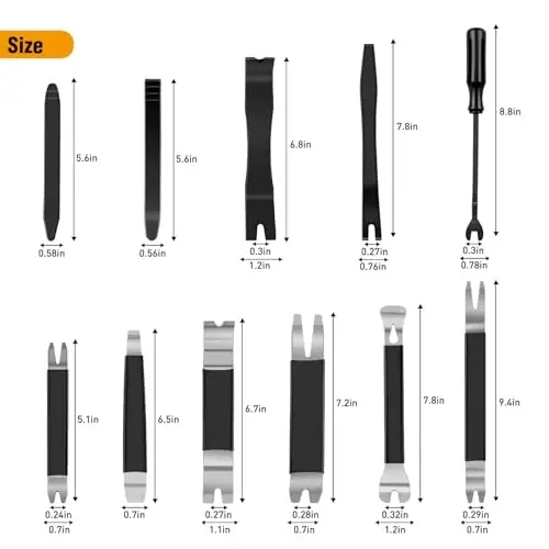 Набор инструментов для снятия обшивки GOOACC из 11 предметов поставляется со стильным черным ящиком для хранения. Этот набор — комплексное решение, которое поможет вам при любых операциях по снятию и установке внутри вашего автомобиля. Он изготовлен из прочных материалов и рассчитан на длительное использование. Он прост в использовании и безопасен как для профессиональных пользователей, так и для любителей.