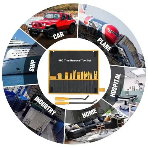 GOOACC Набор инструментов для снятия нейлоновой отделки из 13 предметов — это полный и прочный набор, который позволяет добиться профессиональных результатов при обслуживании и ремонте вашего автомобиля. Желтый цвет позволяет легко его заметить, а портативная сумка позволяет всегда носить его с собой. Подходит как для любителей, так и для профессионалов.