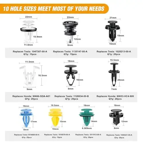 GOOACC 200PCS Araç Plastik Perçin Bağlantı Elemanları İtme Tutucu Seti, otomotiv endüstrisindeki en popüler 10 boyutu bir araya getirerek, aracınızın iç ve dış aksamlarındaki çeşitli bağlantı ihtiyaçlarını karşılamak üzere tasarlanmıştır. Özellikle Tesla araçları için ideal olan bu set, kapı panellerinden radyatör korumalarına, çamurluklardan tamponlara kadar geniş bir yelpazede kullanım imkanı sunar. Bu kapsamlı set sayesinde, farklı bağlantı elemanları arayışıyla oto yedek parça mağazalarında vakit kaybetmenize gerek kalmaz. Tek bir kutuda ihtiyacınız olan 195 adet bağlantı elemanına sahip olarak zamandan ve paradan tasarruf edersiniz. Üstelik, eski klipsleri kolayca sökmenize yardımcı olacak bir sökme aparatı da sete dahildir.GOOACC bağlantı elemanları, yüksek kaliteli malzemeden üretilmiştir ve ağır hizmet tipi yapısıyla uzun ömürlü kullanım sağlar. Bu sağlam yapı, kullanım sırasında kolayca kırılma veya çatlama riskini ortadan kaldırır. Set içerisinde bulunan 10 farklı boyuttaki bağlantı elemanı, kaybolmuş veya hasar görmüş orijinal parçaların birebir yerine geçecek şekilde tasarlanmıştır. Bu sayede, aracınızın görünümünü ve işlevselliğini korurken, güvenli bir sürüş deneyimi de sağlarsınız.Düzenli ve kolay saklama için, set 10 bölmeli bir plastik kutu içerisinde sunulmaktadır. Bu kompakt kutu, garajınızda, bagajınızda veya herhangi bir depolama alanında kolayca saklanabilir ve ihtiyaç duyduğunuzda hızlı bir şekilde erişilebilir. GOOACC 200PCS Araç Plastik Perçin Bağlantı Elemanları İtme Tutucu Seti, araç bakımı ve onarımı konusunda pratik ve ekonomik bir çözüm sunar. Aracınızın bağlantı ihtiyaçlarını karşılamak ve uzun ömürlü bir çözüm elde etmek için bu seti tercih edebilirsiniz. İster profesyonel bir tamirci olun, ister kendi aracınızın bakımını yapmayı seven bir kullanıcı, bu set size büyük kolaylık sağlayacaktır. Artık kayıp veya hasarlı klipsler için endişelenmenize gerek yok; GOOACC ile aracınız her zaman güvende ve sağlam.