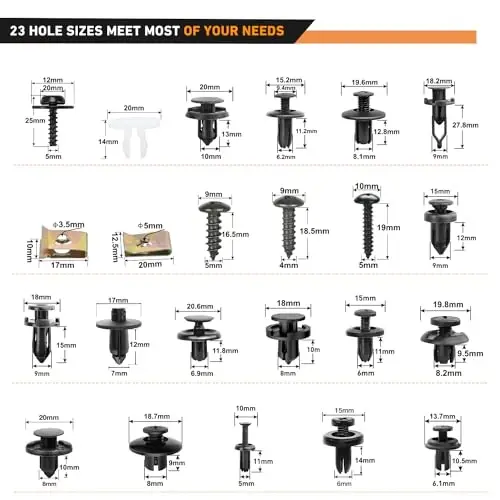 Bu set, aracınızın farklı bölgelerinde kullanılan çeşitli bağlantı elemanlarını içerir. Ürünle birlikte gelen sökme aracı, klipsleri zarar vermeden çıkarmanıza yardımcı olur. Lütfen kullanmadan önce ürünün aracınızla uyumlu olduğundan emin olun.