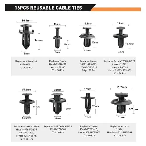 Have a comprehensive solution for your vehicle's maintenance and repair needs with the GOOACC 855 Piece Auto Fastener Clips and Automotive Fasteners Set. This set includes 16 different sizes of retaining clips, which are frequently needed especially in the automotive industry. Compatible with many different brands and models of vehicles such as Toyota, GM, Ford, Honda, Acura, Chrysler, you will have fasteners that you can use in many different areas, from your vehicle's bumper to its fender, from interior trim panels to door panels. Thanks to the cable ties and fastener removal tool included in the set, you can easily perform assembly and disassembly operations. Instead of going to auto spare parts stores, you can now repair and personalize your own vehicle's accessories whenever you want. These clips, made of high-quality black nylon material, are resistant to abrasion and corrosion, thus offering long-lasting use. You can use it safely without encountering problems such as breakage or cracking. This set, which includes 810 clips as well as cable ties and a removal tool, offers everything you need for your vehicle's maintenance in a single box. In this way, you save both time and reduce your costs. The GOOACC 855 Piece Auto Fastener Clip Set is an indispensable aid for the safety and appearance of your vehicle. You can find all the clips you need in this set to fix, repair or replace parts in the interior and exterior of your vehicle. Whether you are a professional mechanic or a user who likes to maintain their own vehicle, this set will provide you with great convenience. This product, manufactured with GOOACC quality, is an investment that you can use safely for many years. Thanks to this set, which contains all the fasteners your vehicle needs, you will always be prepared.
