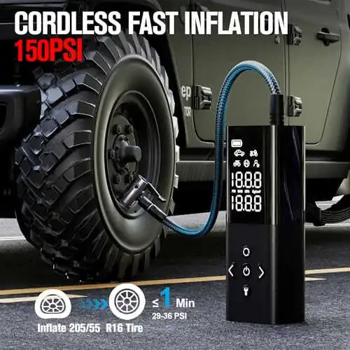 GOOLOO AP150 Taşınabilir Hava Kompresörü, lastik şişirme ihtiyaçlarınızı karşılamak için tasarlanmış güçlü ve çok yönlü bir cihazdır. Geleneksel lastik pompalarına kıyasla 2 kata kadar daha hızlı şişirme özelliği sayesinde zamandan tasarruf etmenizi sağlar. 150PSI'a kadar basınç üretebilen bu kablosuz hava pompası, otomobiller, motosikletler, bisikletler ve spor topları dahil olmak üzere çeşitli nesneleri şişirmek için idealdir. Dijital basınç göstergesi, hassas ve doğru okumalar sağlayarak lastiklerinizi doğru basınca kadar şişirmenize olanak tanır, bu da yakıt verimliliğini artırır, lastik ömrünü uzatır ve sürüş güvenliğini artırır. AP150'nin otomatik kapanma özelliği, önceden belirlenmiş bir basınca ulaşıldığında pompayı otomatik olarak durdurarak aşırı şişirmeyi önler ve gönül rahatlığı sunar. Kompakt ve taşınabilir tasarımı, aracınızda saklamayı veya seyahatlerinizde yanınızda taşımayı kolaylaştırır. İster yolda lastiğiniz patlasın, ister sadece lastik basıncınızı kontrol etmek isteyin, GOOLOO AP150 Taşınabilir Hava Kompresörü güvenilir ve kullanışlı bir çözümdür. Kullanıcı dostu arayüzü ve kolay kullanımı sayesinde herkes için uygundur. Acil durumlar için hazırlıklı olun veya spor ekipmanlarınızı şişirme ihtiyacınızı karşılayın; GOOLOO AP150 her zaman yanınızda olacak.