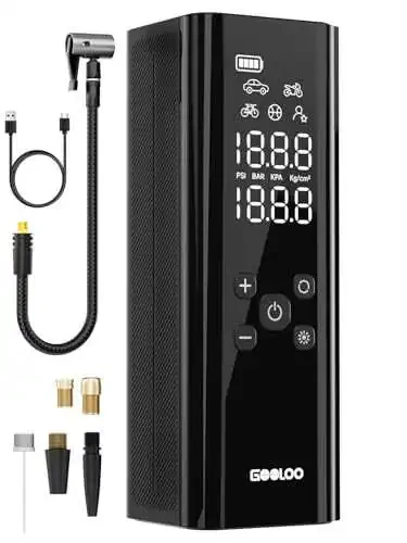GOOLOO GT150 — это удобное и надежное устройство, которое стоит иметь под рукой в поездках, дома или на природе. Благодаря компактному дизайну его легко переносить и хранить. В любой чрезвычайной ситуации он позволит вам быстро и эффективно накачать шины, зарядить электронные устройства и обеспечить освещение в темноте. Благодаря прочной конструкции и длительному сроку службы аккумулятора вы можете использовать его с уверенностью в течение многих лет.