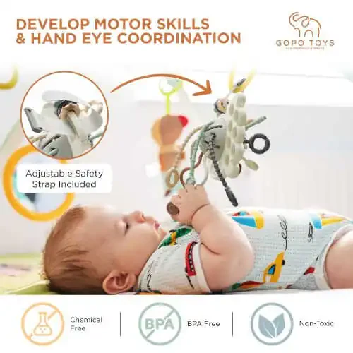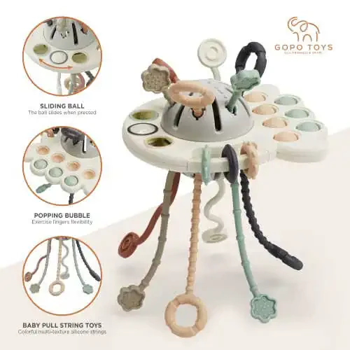 GOPO TOYS Montessori Toys are the perfect choice for babies 18 months and older. These colorful and engaging toys are designed to support your baby's sensory development, hand-eye coordination, and problem-solving skills. Made from soft silicone, these pull toys are safe and comfortable for your baby's little hands.