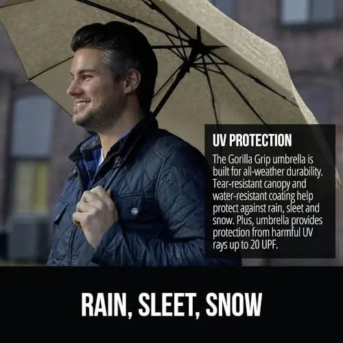 The Gorilla Grip umbrella is also extremely practical to use. Thanks to its easy one-handed opening and closing feature, you can react quickly even when a sudden rain starts. You can open and close the umbrella with a single click, which provides you with great convenience. This feature will be especially useful when your hands are full or when you are in a hurry. The non-slip and soft-textured handle allows you to hold the umbrella comfortably for a long time. Thanks to its ergonomic design, it does not slip in your hand and provides you with a secure grip. In addition, thanks to the waterproof coating of the umbrella, raindrops easily slide off the fabric and the umbrella dries quickly. The durable canopy made of 190T Pongee fabric is more durable than polyester fabrics and provides better protection against heavy rain.