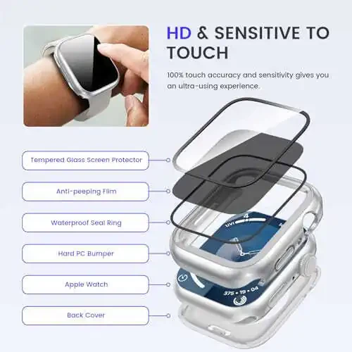 apple watch ekran himoyachisi, apple watch 40mm, apple watch se, apple watch 6 seriyasi, apple watch 5 seriyasi, apple watch 4 seriyasi, suv o'tkazmaydigan qopqoq, maxfiylik qopqog'i, goton, telefon aksessuarlari
