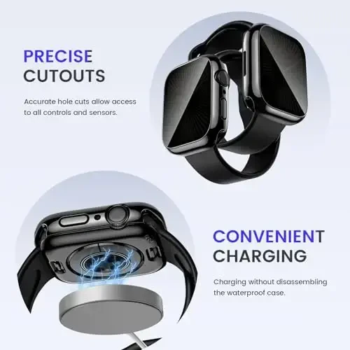 Apple Watch 42mm G‘ilofi: Suv o‘tkazmaydigan, Maxfiylik filtri bilan, Zarbadan himoya! Series 11/10 mos keladi.