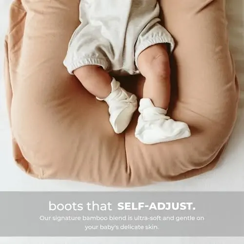 Introducing Goumikids Viscose Made from Bamboo Cotton Stay-On Boots! One of the biggest problems when it comes to baby booties is that they are constantly falling off of tiny feet. Luckily, Goumikids is here to eliminate this problem! While other baby booties tend to fall off as soon as they are put on, Goumikids' special two-piece closure system combines secure elasticity with adjustable hook-and-loop fastener to ensure that the boots stay in place. This way, the boots stay securely on your baby's feet even during active moments, and you are spared the trouble of constantly adjusting them. Available in a wide range from premature babies to 18-month-old babies, these anti-scratch boots grow with your baby as they grow. Thanks to our premium fabric specially designed for your baby's sensitive skin, Goumikids boots are not only functional but also extremely comfortable. Made from a blend of 70% viscose and 30% organic cotton, these boots are ultra-soft, breathable and moisture-wicking. These features keep your baby's skin dry and comfortable, even during drooly sleeps! It is an ideal choice for babies with sensitive or eczema-prone skin. The self-adjusting design of Goumikids boots automatically adjusts as your baby gains weight. This way, you don't have to constantly buy new sizes or deal with boots that suddenly don't fit. Thanks to its flexible design, your baby's feet can move comfortably and the boots do not create a feeling of squeezing or discomfort. Machine washable and incredibly easy to care for, these boots make life easier for busy moms. The organic cotton blend absorbs less moisture than normal cotton, which allows the boots to be thrown in the washing machine and retain their soft texture after each wash. Combining practicality and durability, Goumikids boots will be an indispensable part of your baby's wardrobe. Goumikids is one of the rare brands that offers a full size range from premature babies to toddlers. Premature, 0-3M, 3-6M, 6-12M and 12-18M size options are available. Larger sizes have non-slip grips so your baby can safely roam around when they start walking. Combining safety and comfort, this feature helps your baby take their first steps safely. Pamper your baby's feet and enjoy the comfort with Goumikids Viscose Made from Bamboo Cotton Stay-On Boots!