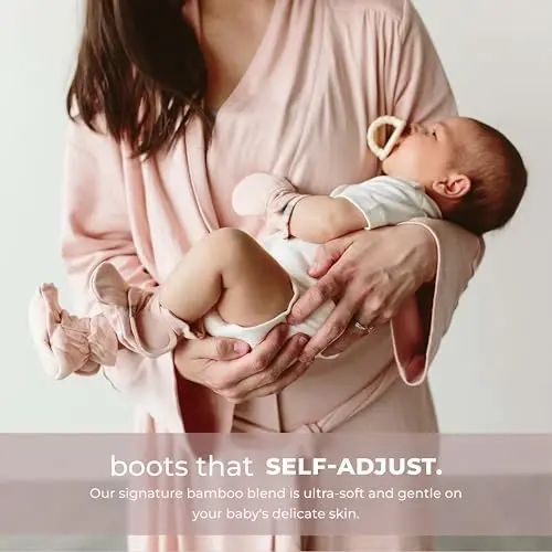 Keep little feet warm and secure with Goumikids Viscose Made from Bamboo Cotton Stay-On Boots! Say goodbye to lost socks! These super soft baby booties stay in place no matter what, thanks to their adjustable design. Goumikids' signature two-part closure system keeps the booties securely on your baby's foot, and the adjustable feature allows for long-term use as your baby grows. This provides great convenience for both you and your baby. Plus, they are not only practical but also stylish and comfortable!Made from viscose fabric made from bamboo cotton, Goumikids Stay-On Boots gently touch your baby's delicate skin and provide comfort all day long. The natural breathable structure of bamboo cotton helps prevent sweating, keeping your baby's feet dry and cool. This prevents problems such as diaper rash and irritation. At the same time, bamboo cotton has anti-bacterial properties, which creates an extra layer of protection for your baby's foot health.Goumikids Stay-On Boots are not only comfortable but also practical. The two-piece closure system allows you to easily put on and take off the booties. In addition, you can adjust the booties according to your baby's ankle, ensuring that they stay in place even when moving. This feature is ideal for active babies. You don't have to worry about the booties slipping or coming off while your baby is crawling, walking or playing.Goumikids Stay-On Boots are designed to accompany your baby from their first steps. Thanks to its non-slip sole feature, it helps your baby maintain their balance and move safely. Non-slip grips, especially in sizes 6-12 months and above, provide extra support for your baby when they start walking. This way, your baby feels safer while exploring the new world.Goumikids produces by thinking not only of today but also of the future. Thanks to its luxuriously soft texture and high-quality materials, Goumikids Stay-On Boots are long-lasting and can be passed down from generation to generation. In this way, you both keep your baby's feet warm and make an environmentally conscious choice. With Goumikids, you choose the best for your baby and invest in the future at the same time.