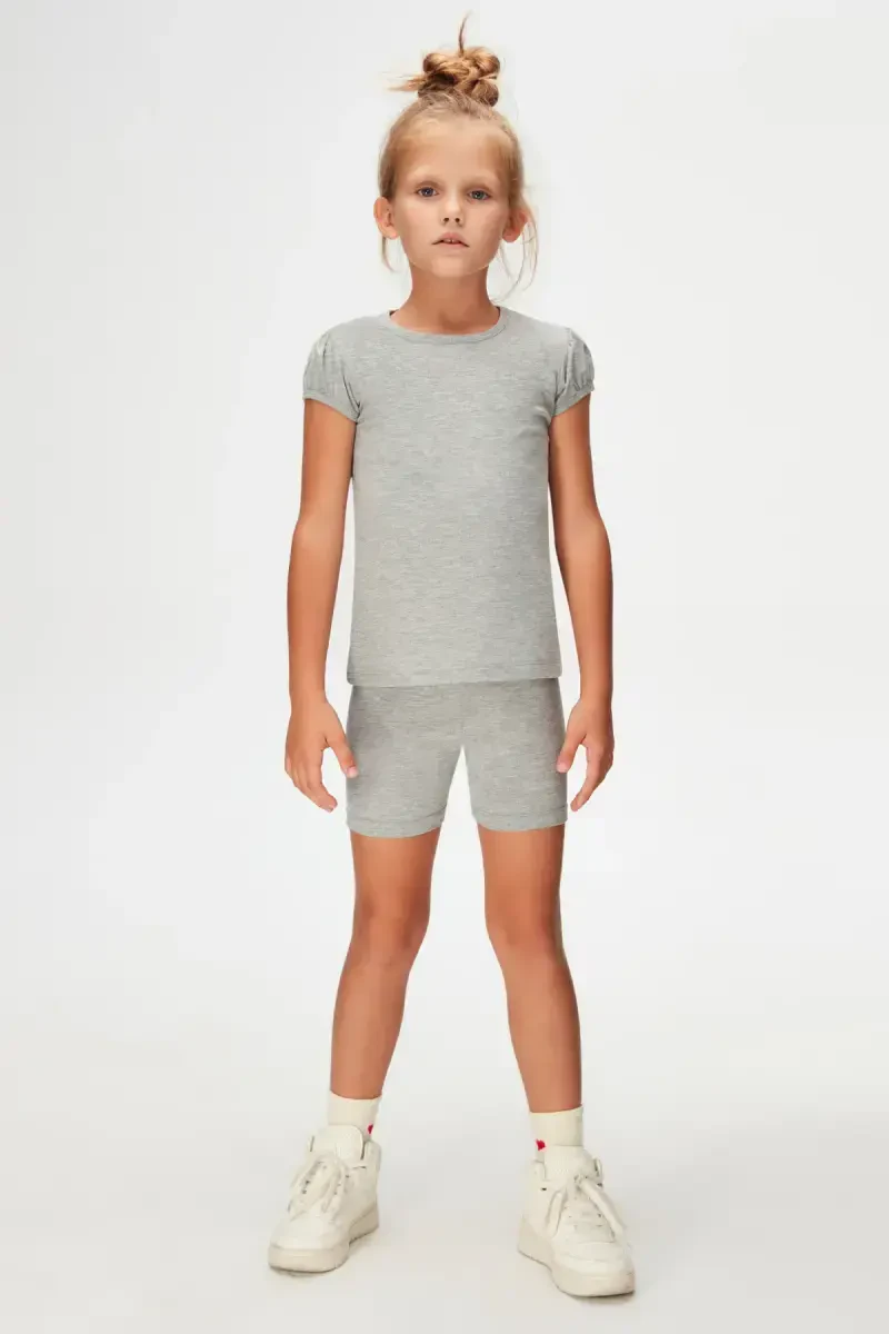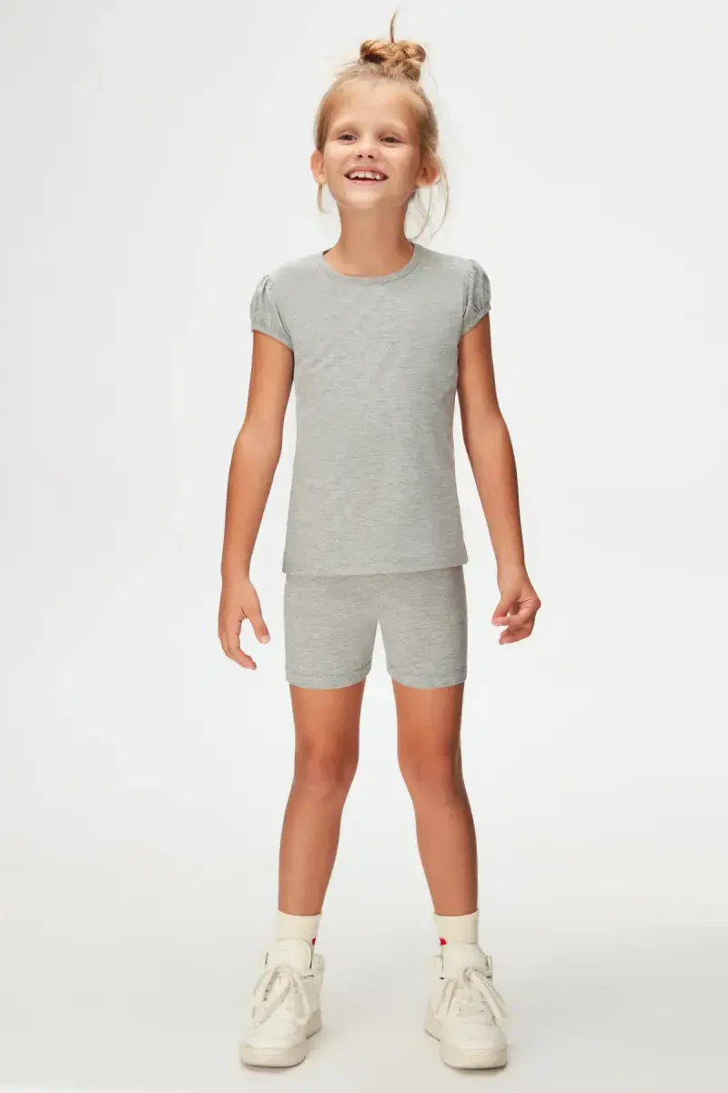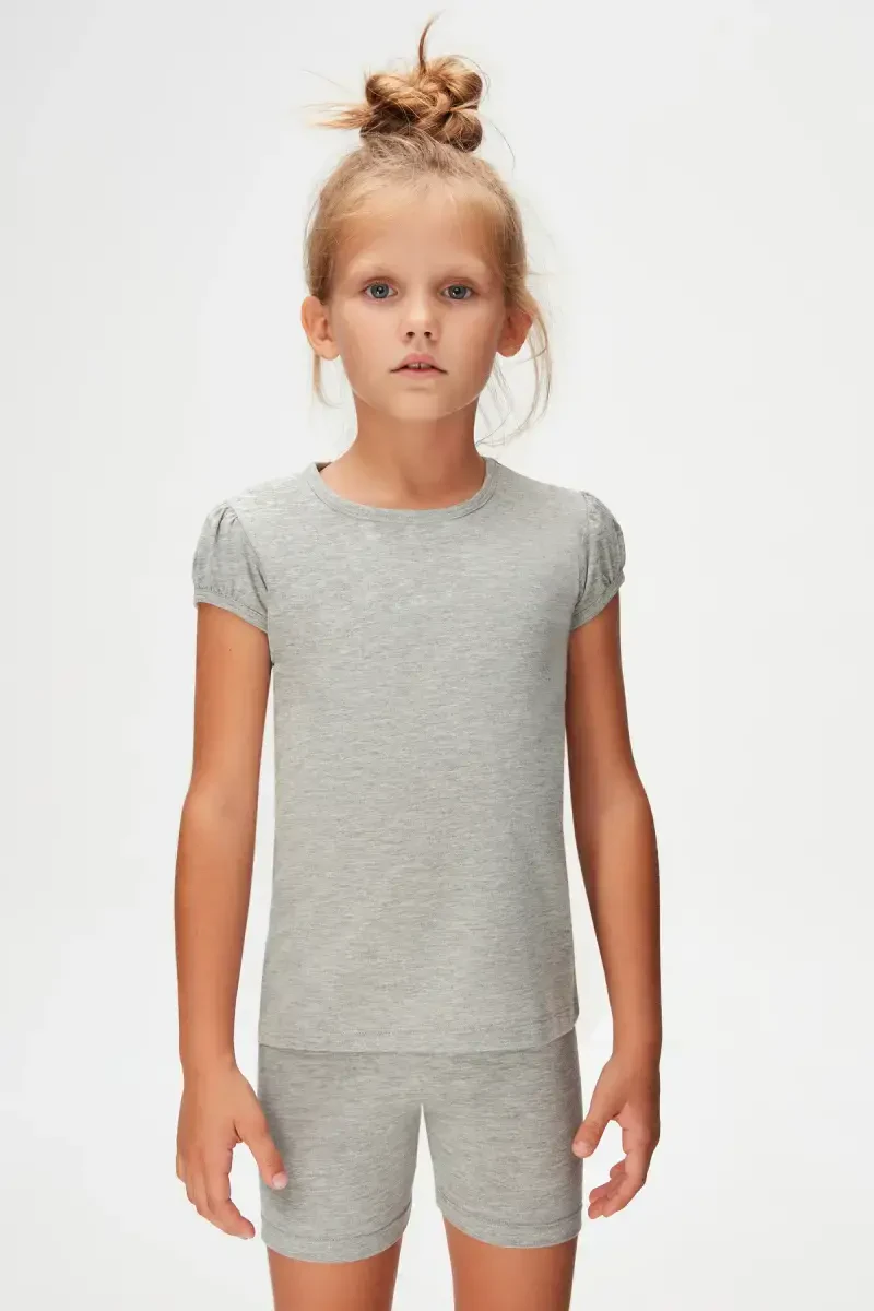 girl's t-shirt, gray t-shirt, basic t-shirt, cap sleeve, crew neck, COOL GRAY, children's clothing, comfortable t-shirt, stylish t-shirt, daily wear