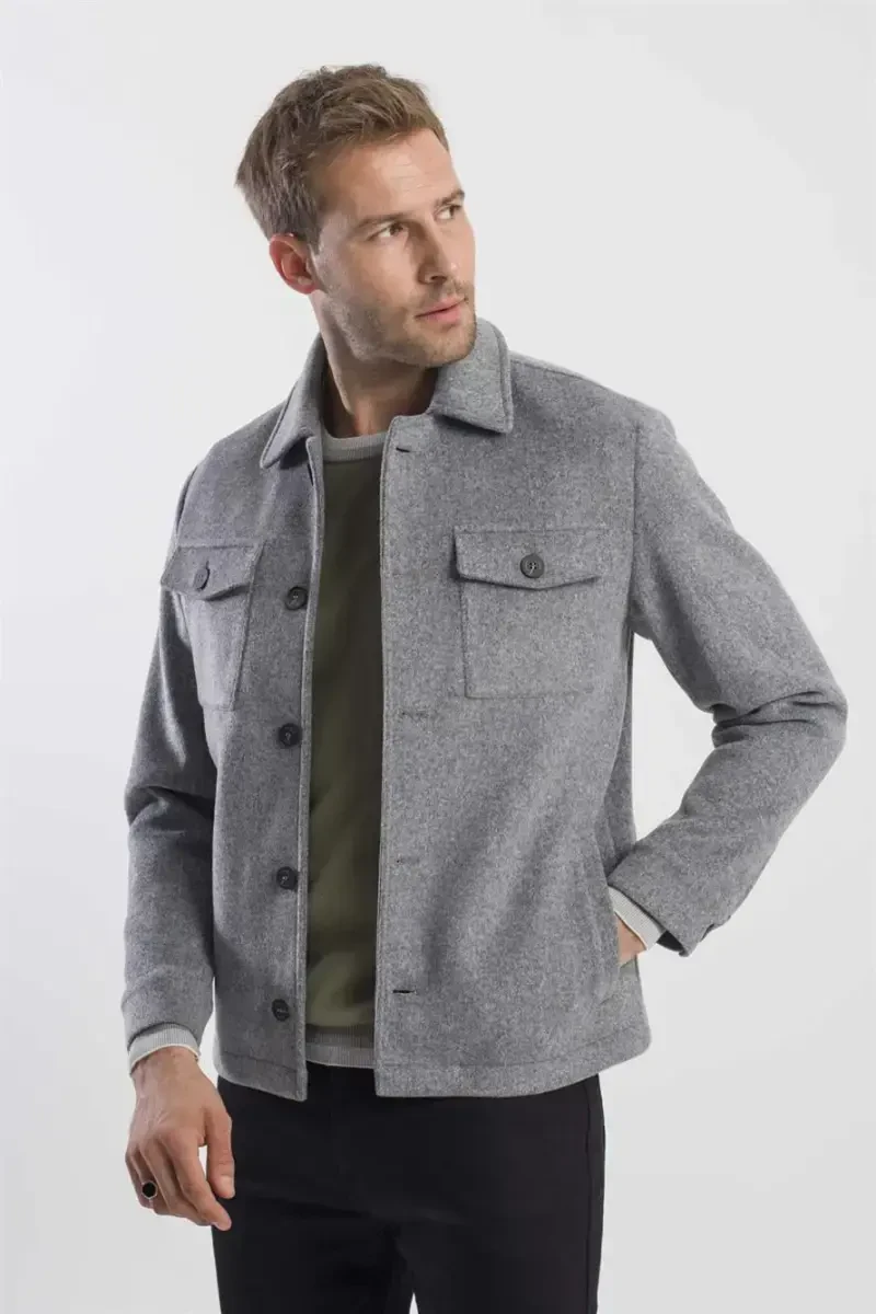 ## Gray Comfort Fit Shawl Collar Woolen Coat