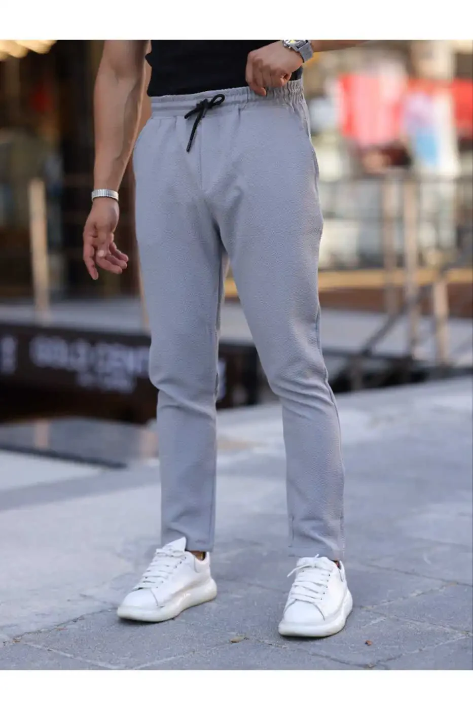 Designed to add a modern and comfortable touch to your everyday style, these jogger pants stand out with their unique style and comfortable construction. The slim fit cut provides a perfect fit to your body, offering freedom of movement while giving a stylish look. Its textured fabric provides a quality feel while providing breathability and durability. The elastic waistband and drawstring design ensure that the pants fit perfectly on every body type and offer a personalized fit. The straight leg model offers a stylish and modern look, making it perfect for any type of outerwear. Its gray color easily adapts to any combination, adding elegance to your style.