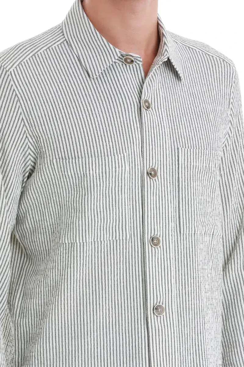 Meet our Green Classic Fit Striped Long Sleeve Overshirt, combining style and comfort! This overshirt offers timeless elegance and will become a staple in your wardrobe. Featuring a classic cut, this shirt is made from high-quality, soft, and breathable fabric. Its subtle stripes provide an elegant look, while its long sleeves and comfortable cut ensure all-day comfort. Perfect for everyday wear and special occasions, this overshirt is a versatile piece that suits any style. Pair it with jeans and sneakers for a sporty chic look, or dress it up with dress pants and boots for a more formal appearance; our Green Classic Fit Striped Long Sleeve Overshirt is always an excellent choice. With its natural green tone and stylish stripes, this overshirt will add a sophisticated touch to your style, and its quality and elegance will accompany you for years to come. It will keep you warm in cold weather and keep you cool in summer thanks to its thin fabric. Don't miss this overshirt that will complete your daily combinations and add originality to your style!