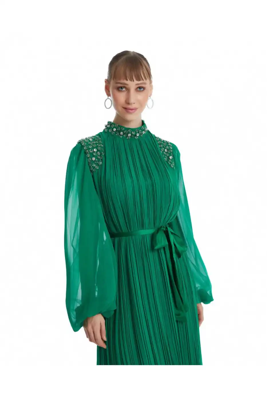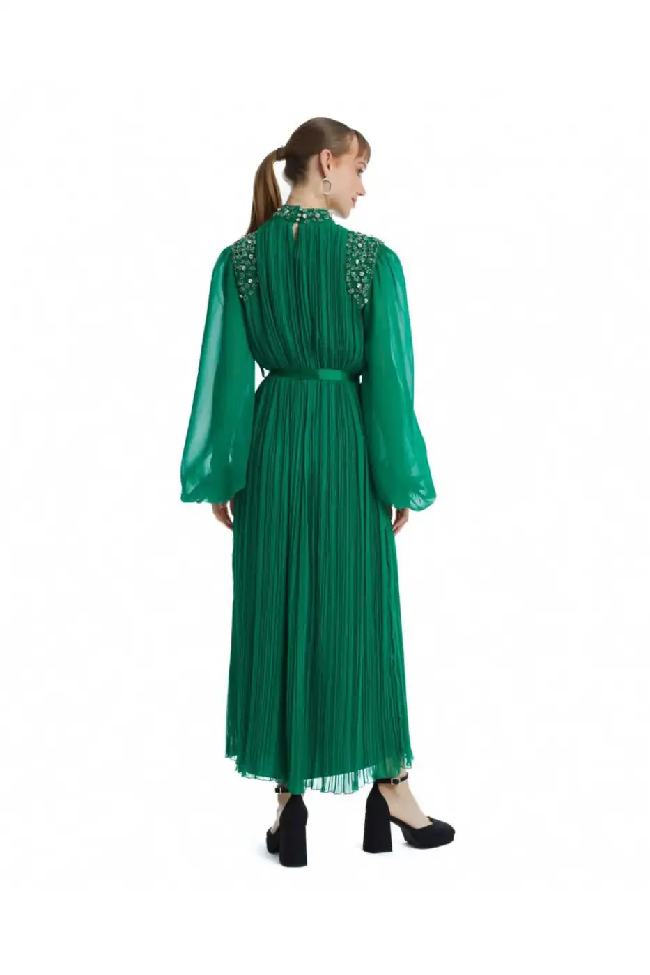 green dress, off shoulder dress, neck detail dress, belted dress, comfortable dress, elegant dress, timeless dress