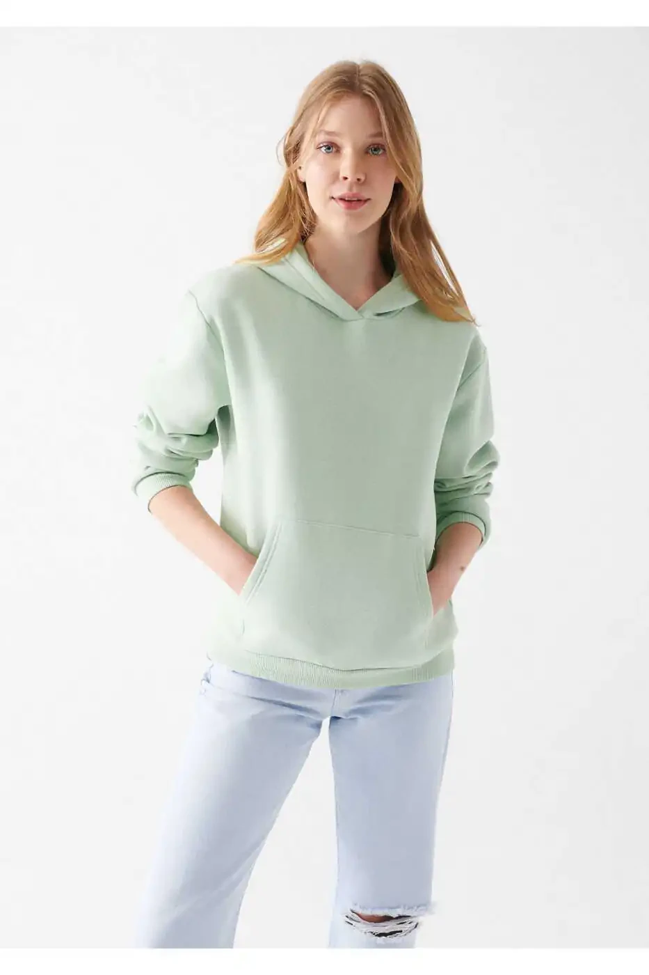 The hooded design keeps you warm on chilly days, while the green color adds energy to your style. The kangaroo pocket on the front is ideal for warming your hands or carrying small items.