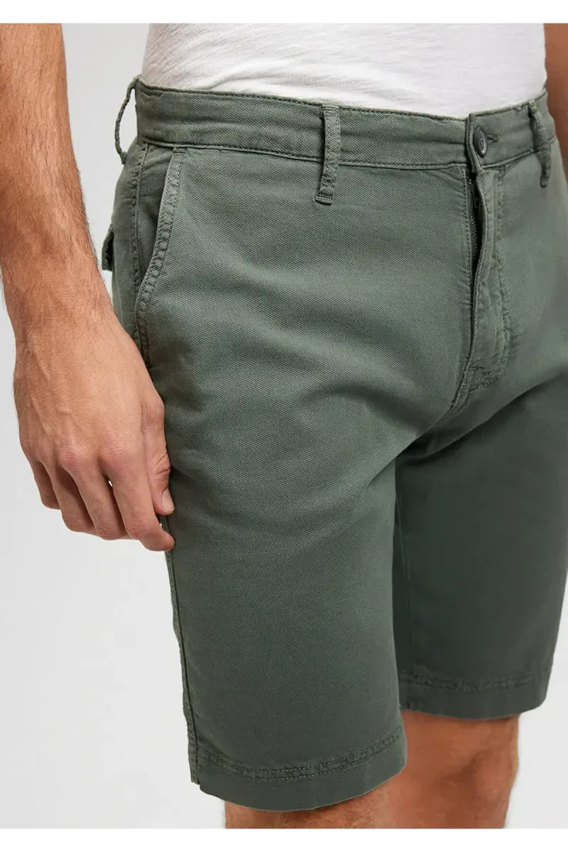 Green Chino Shorts with Linen Blend - Comfort and Style Combined
