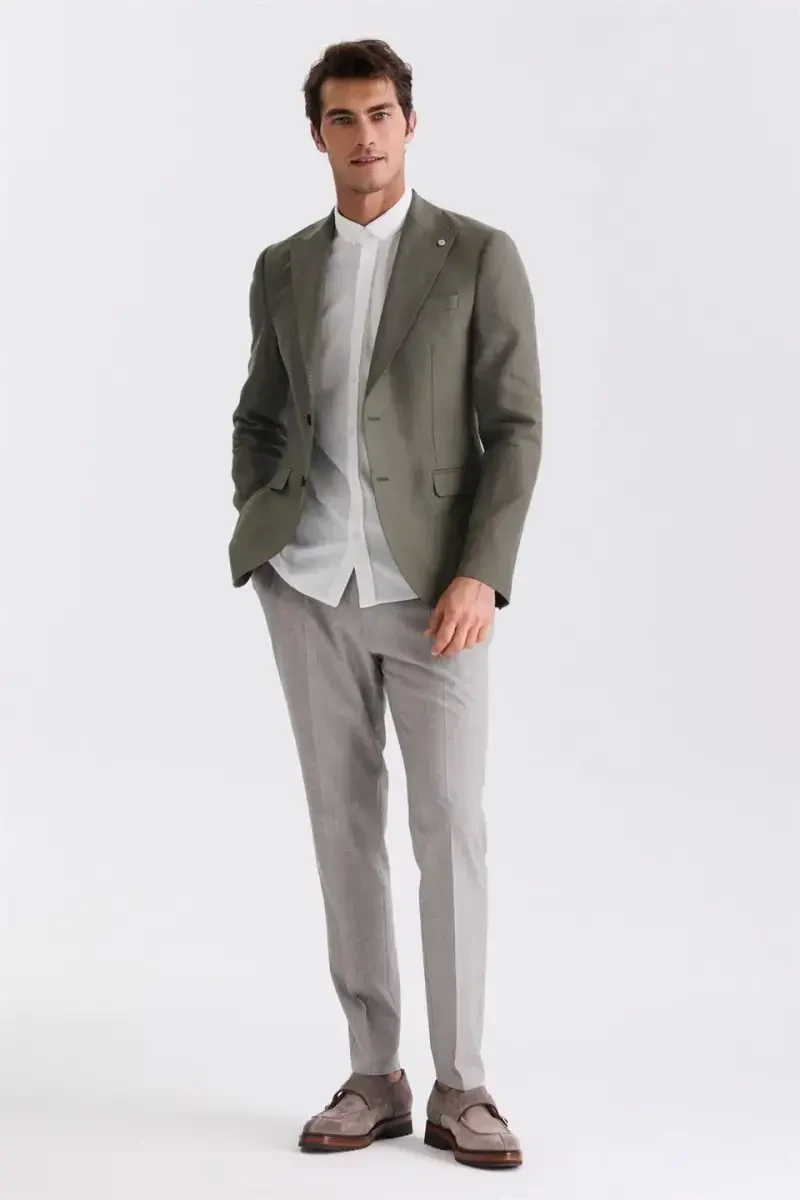 Green Slim Fit Linen Blazer: Stylish and Comfortable