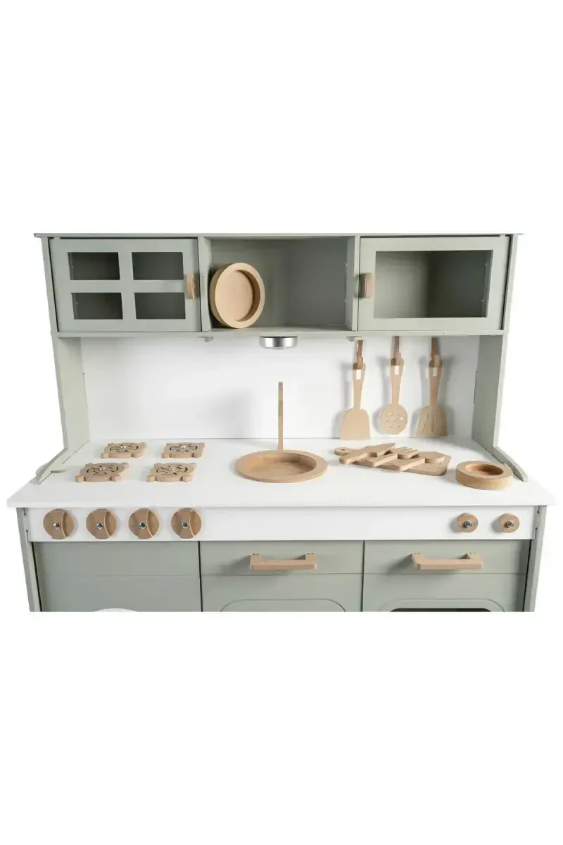 The Green Wooden Toy Kitchen Set, which stimulates children's imagination and allows them to develop their culinary skills, is a candidate to be indispensable for little chefs! With this 9-piece service set, children will have the opportunity to socialize by playing fun games with their friends or family. The fact that it is made of wooden material provides both durability and can be used safely as it does not contain any substances that will harm children's health. Offering a real kitchen experience with its LED light details, this toy set will attract children's attention and make their playtime even more fun. It helps children develop their motor skills while also encouraging their creativity. Ideal for children aged 2 to 7, this kitchen set offers long-lasting fun. The product is shipped disassembled and is ready for use in a short time thanks to its easy installation. Consisting of a total of 59 pieces, this set allows children to create unlimited recipes in their imagination. It adapts to every child's room with its green color and stylish design. Children will have fun and learn with this kitchen set. This product, which offers peace of mind for parents, is designed considering the safety of children. It is an ideal choice for those looking for a fun and educational toy that will contribute to their development. While helping children socialize, develop their creativity and strengthen their hand-eye coordination, this kitchen set also gives them a real kitchen experience. Offered with Hobby House quality, this product is a toy that you can use safely for many years.