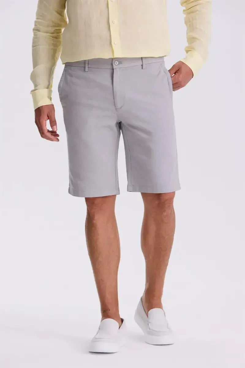 **Grey Comfort Fit Linen Textured Relaxed Cotton Shorts**