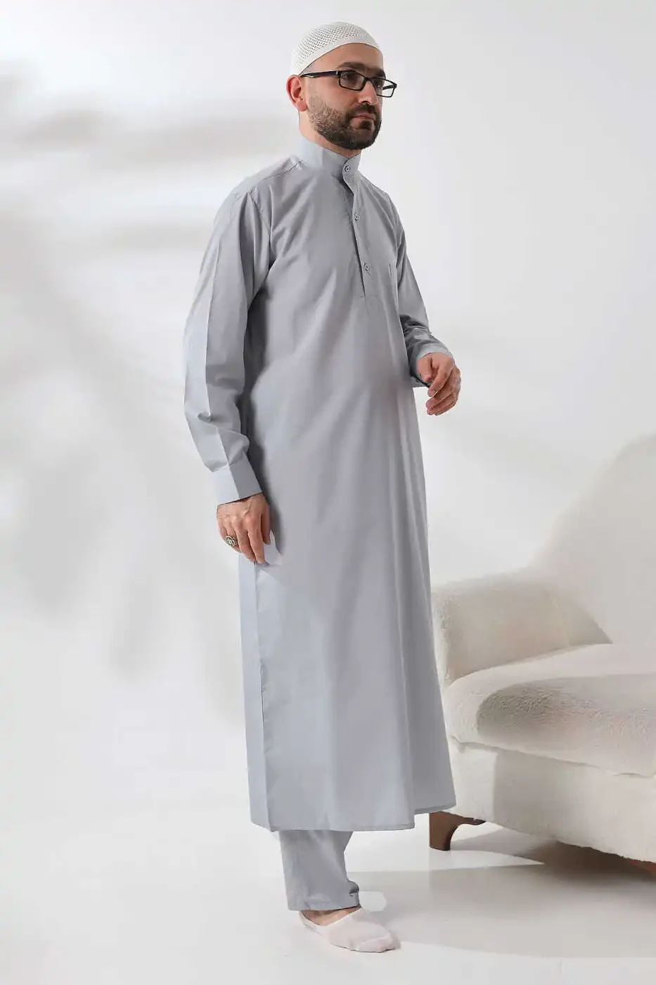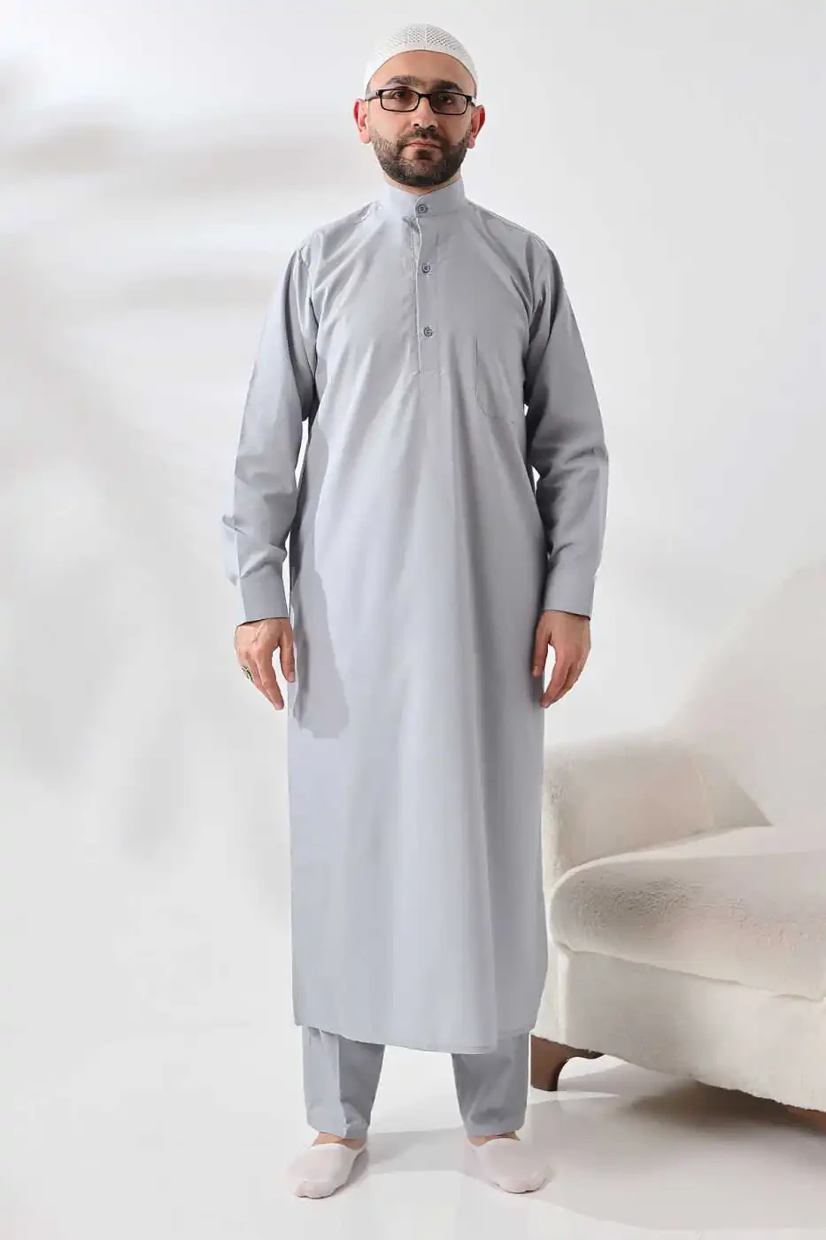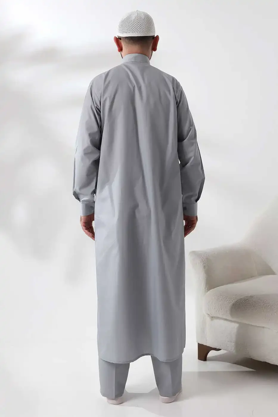 **Gray Dagron Fabric Men's Hajj and Umrah Clothing Ihram Set****Fabric Features:*** Made from high-quality Dagron fabric.* Finely textured, breathable, and comfortable.* Wrinkle and stain resistant.* Easy to wash and iron.**Design Features:*** Designed in a traditional ihram style.* Long sleeves, straight cut.* Adjustable drawstring at the waist.* Two side pockets and two upper pockets for functionality.* Two pieces: ihram and ihram skirt.* Ihram skirt is made from a soft silk-like fabric.**Advantages:*** Comfortable and stylish option.* Ideal for religious rituals such as Hajj and Umrah.* Durable for long-term use.* Easy to clean and requires minimal care.* Affordable price.**Usage Areas:*** Hajj and Umrah rituals* Other religious ceremonies* Casual wear for comfort and style**Measurements:**Ihram:* Length: 135 cm* Chest Width: 58 cm* Sleeve Length: 60 cmIhram Skirt:* Length: 220 cm* Width: 120 cm**Note:** Ihram and ihram skirt are also sold separately.