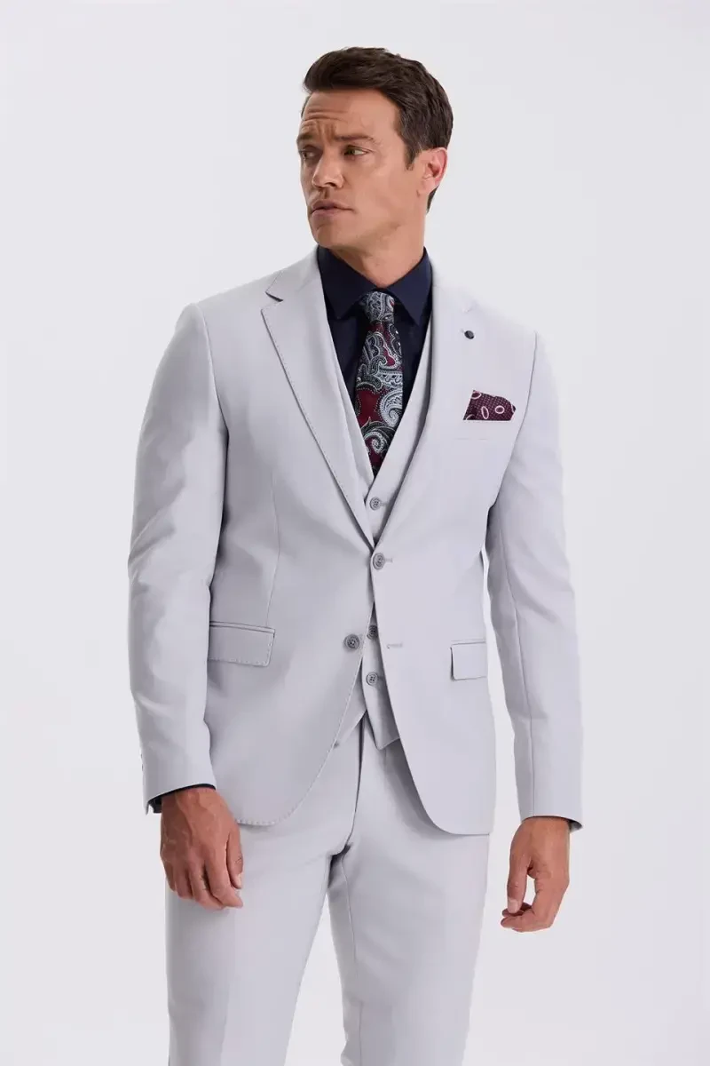 Elevate your style for everyday business or formal events with the Grey Slim Fit Mono Collar Double Vent Waistcoat Suit. Order now to turn heads wherever you go!