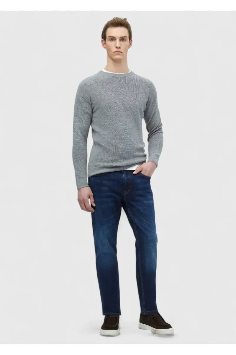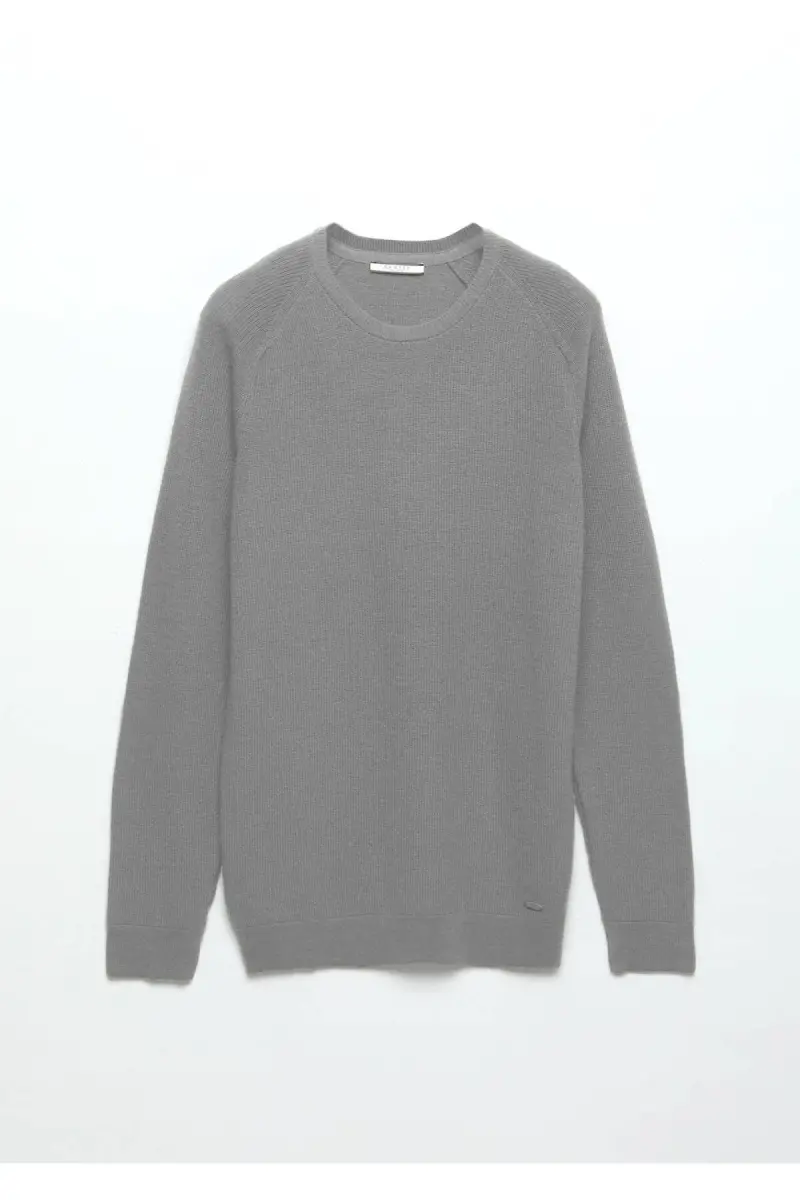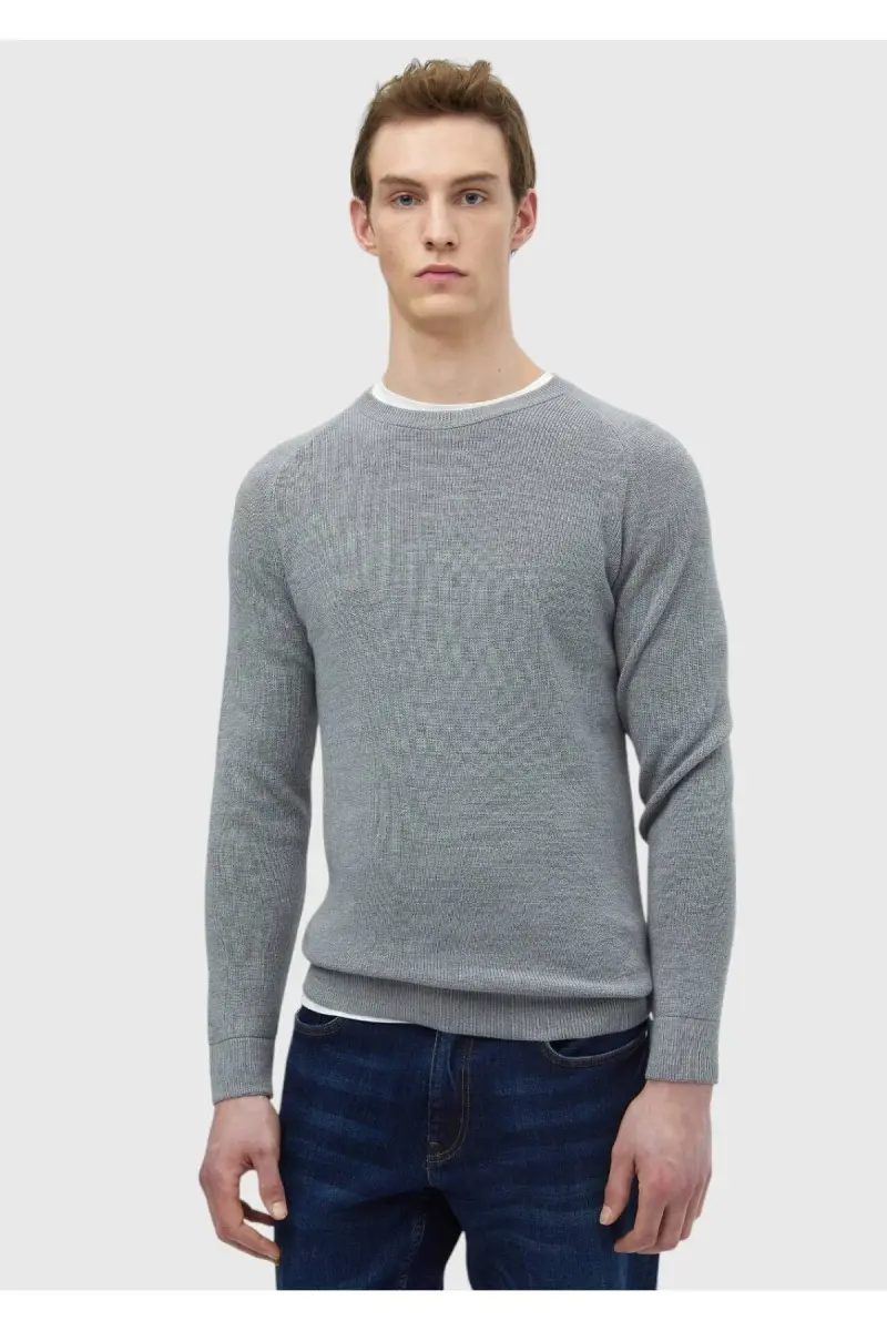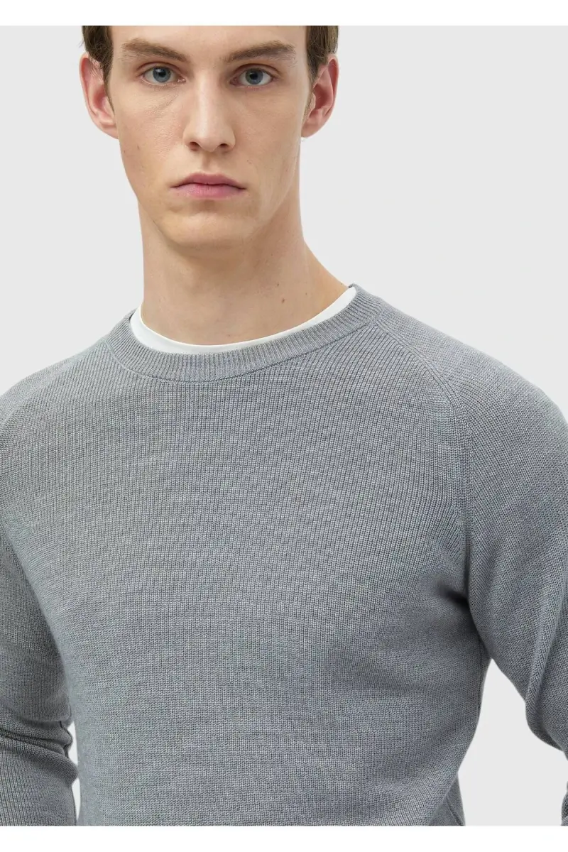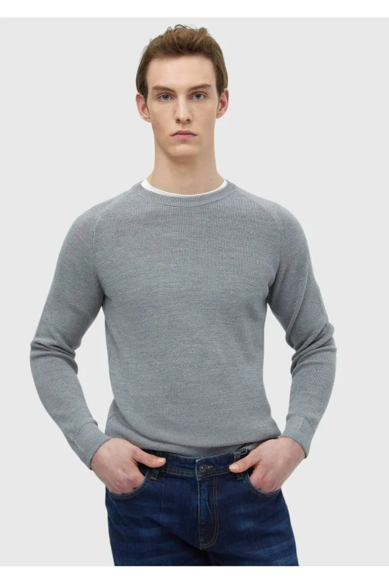 Gri Bisiklet Yaka Jakarlı Yün Karışımlı Triko Kazak-Gri