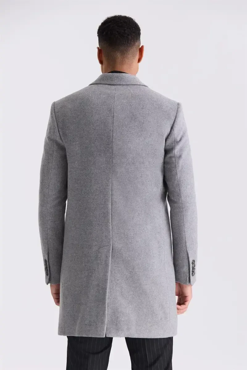 Kaşe kaban, kışlık kaban, gri kaban, mono yaka kaban, yan cepli kaban