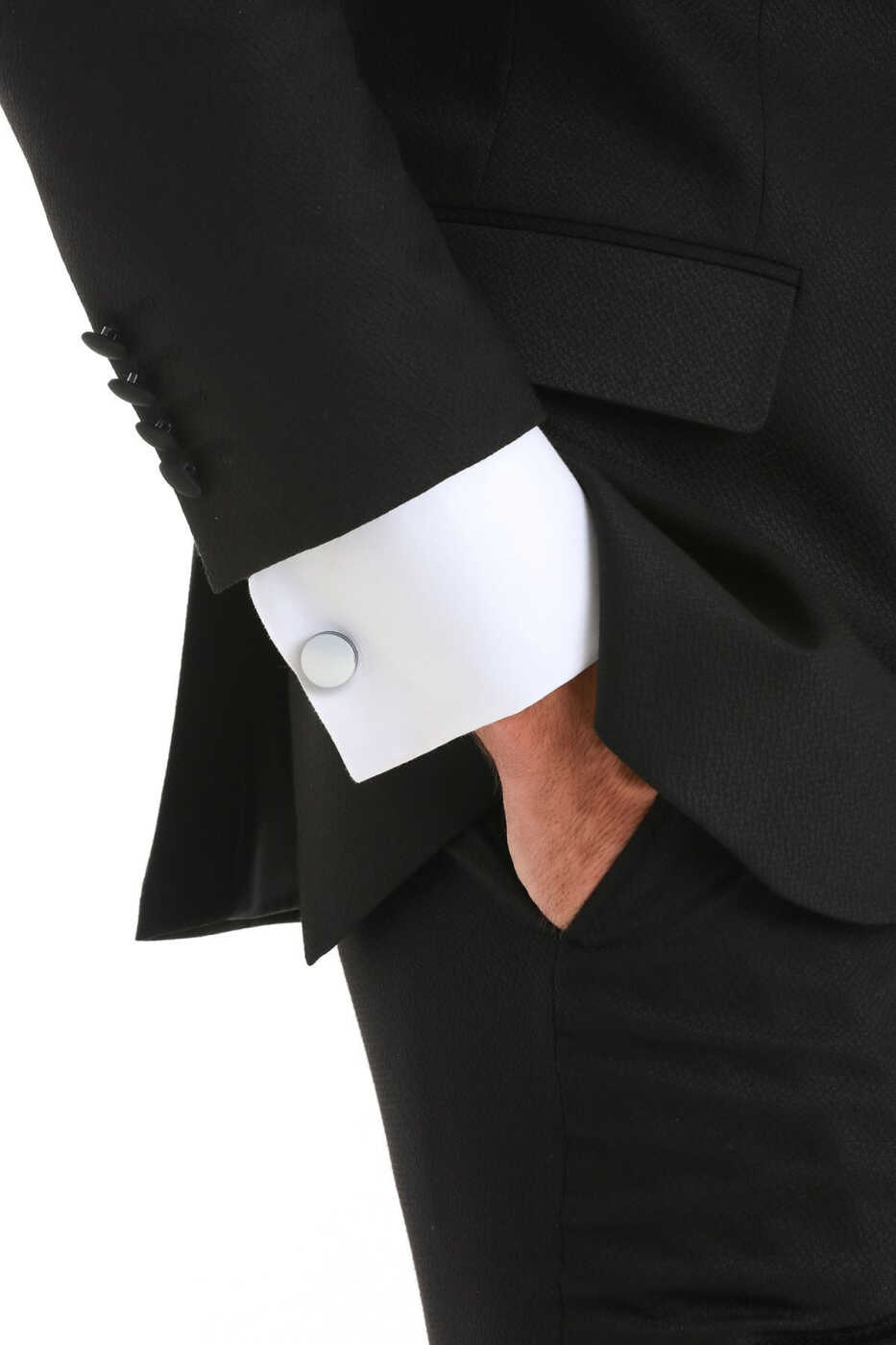 - 1 çift gri düz yuvarlak kol düğmesi