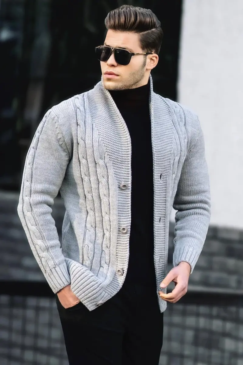 Gri Örgülü Hırka 9053-Gri