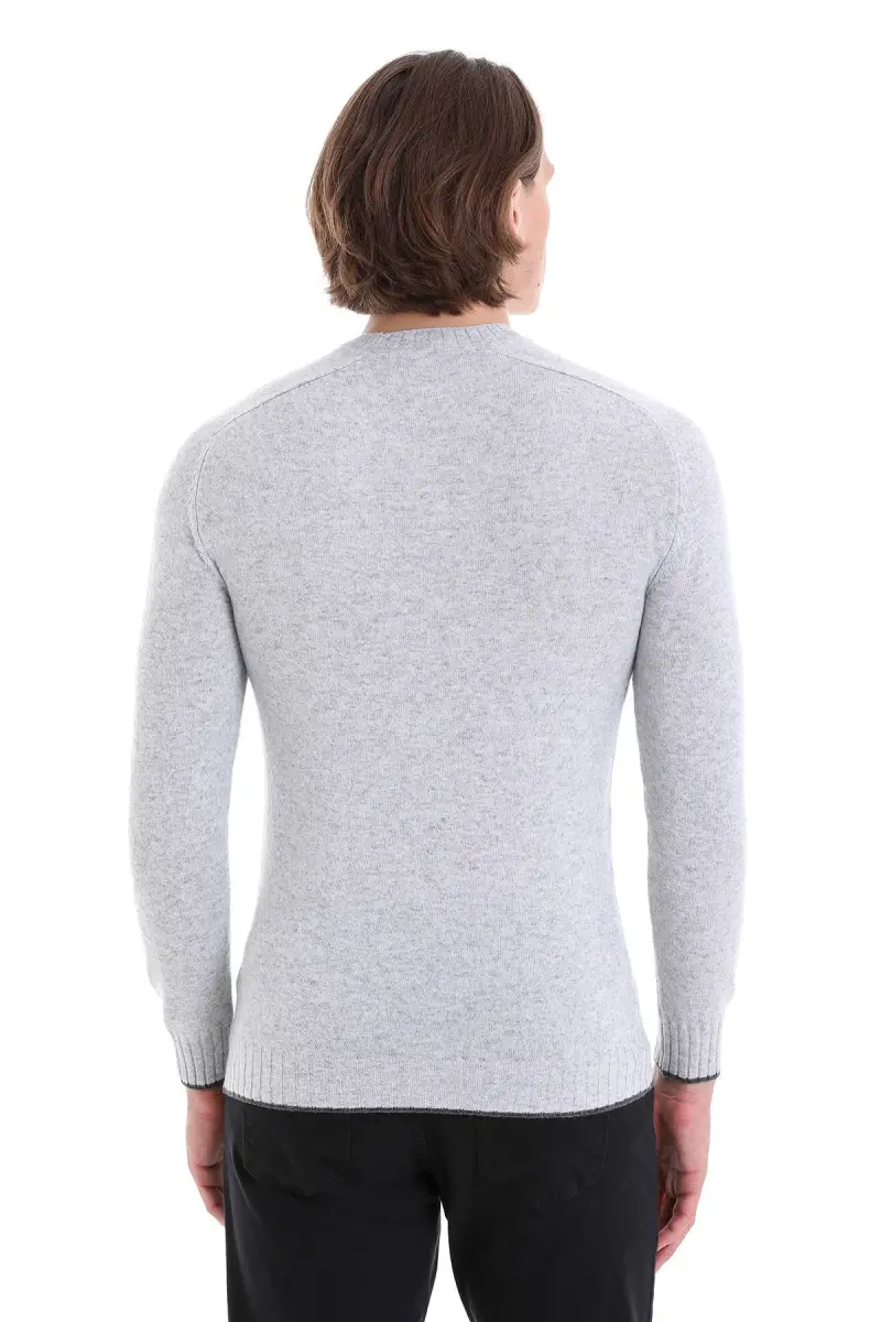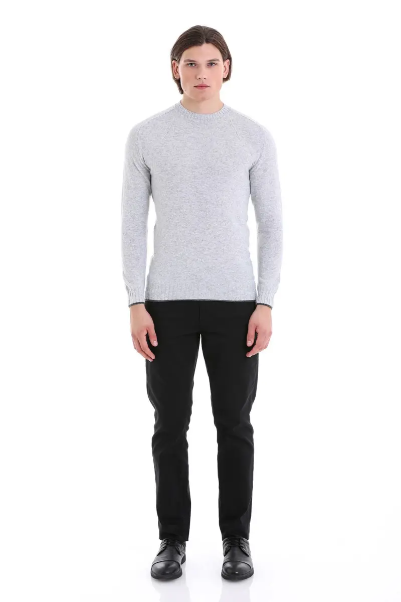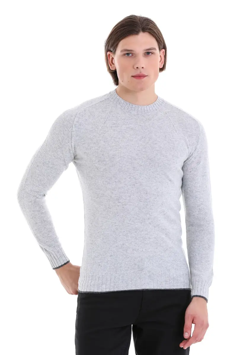 Gri Regular Fit Düz Bisiklet Yaka Yünlü Triko Kazak-Gri