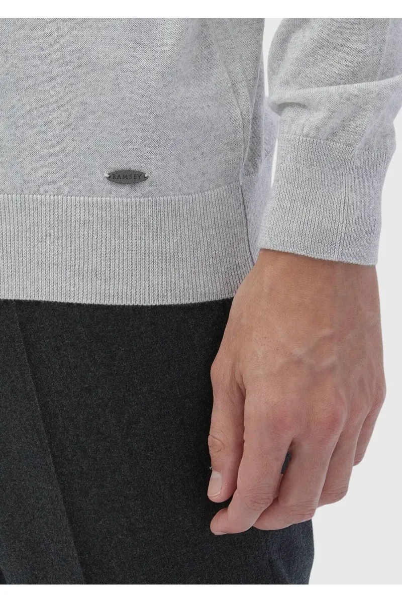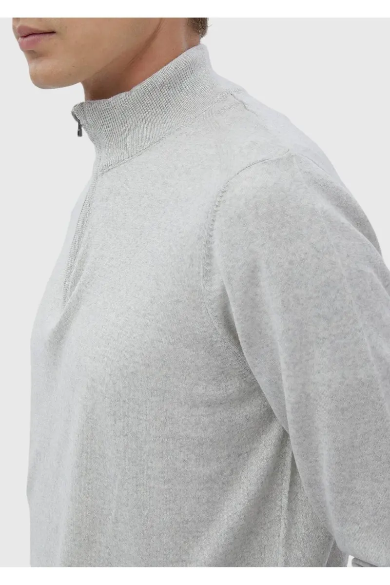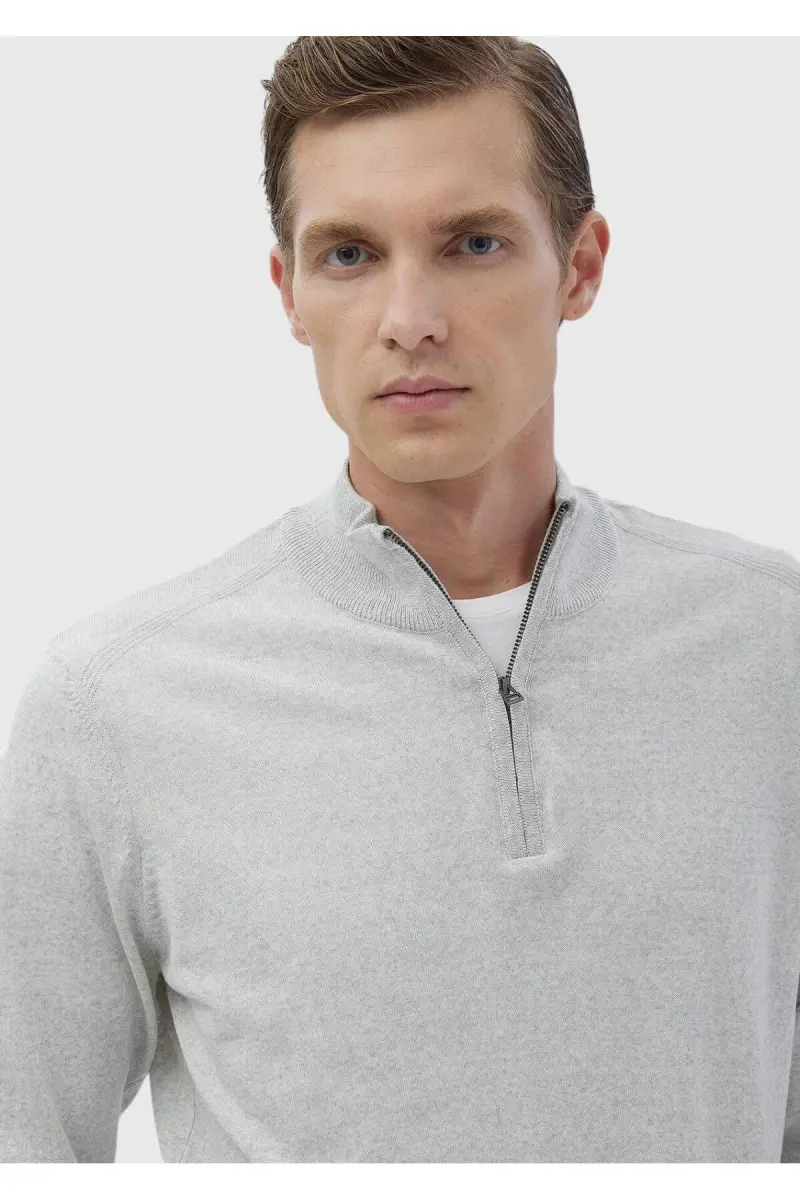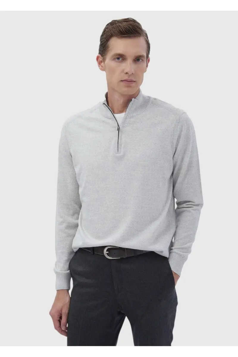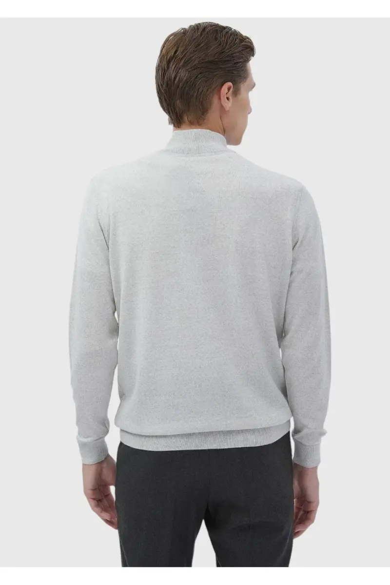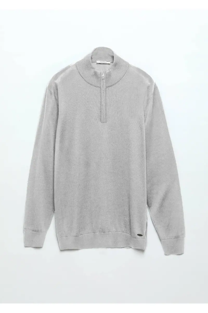 Gri Yarım Balıkçı Yaka Düz Örgü Yün Karışımlı Triko Kazak-Gri