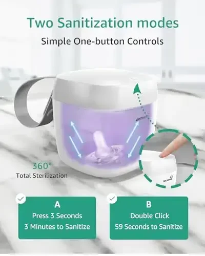Grownsy Emzik Sterilizatörü, bebeğinizin sağlığını korumak için tasarlanmış güvenli ve etkili bir üründür. UV ışığı teknolojisi, bakteri ve mikropları %99,99 oranında yok ederek bebeğinizin sağlığını güvence altına alır. Ürün, BPA içermez ve bebeklerin sağlığına zarar verecek herhangi bir madde içermemektedir. Düzenli olarak temizlenmesi ve kuru tutulması, ürünün ömrünü uzatır ve hijyenik kullanımını sağlar.